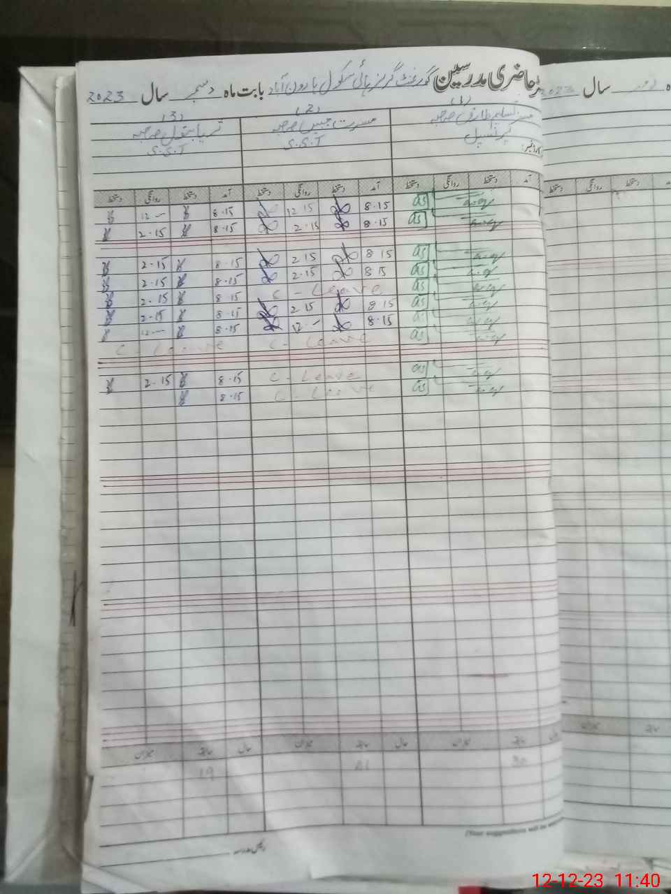 | CNIC | Full Name | Designation | R/C | Absence During Last Calender Month |