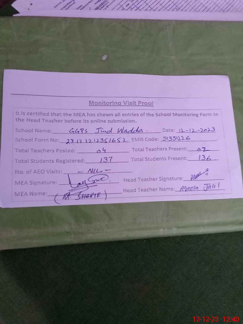 | EMIS Code: 31331226 | Name of School: GGPS JIND WADDA | |||