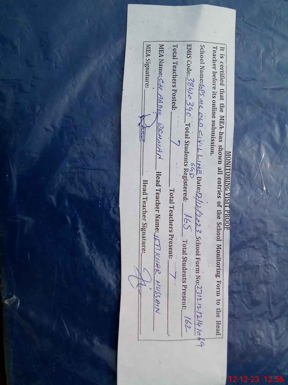 | EMIS Code: 38420390 | Name of School: GPS MC OLD CIVIL LINE SARGODHA | |||