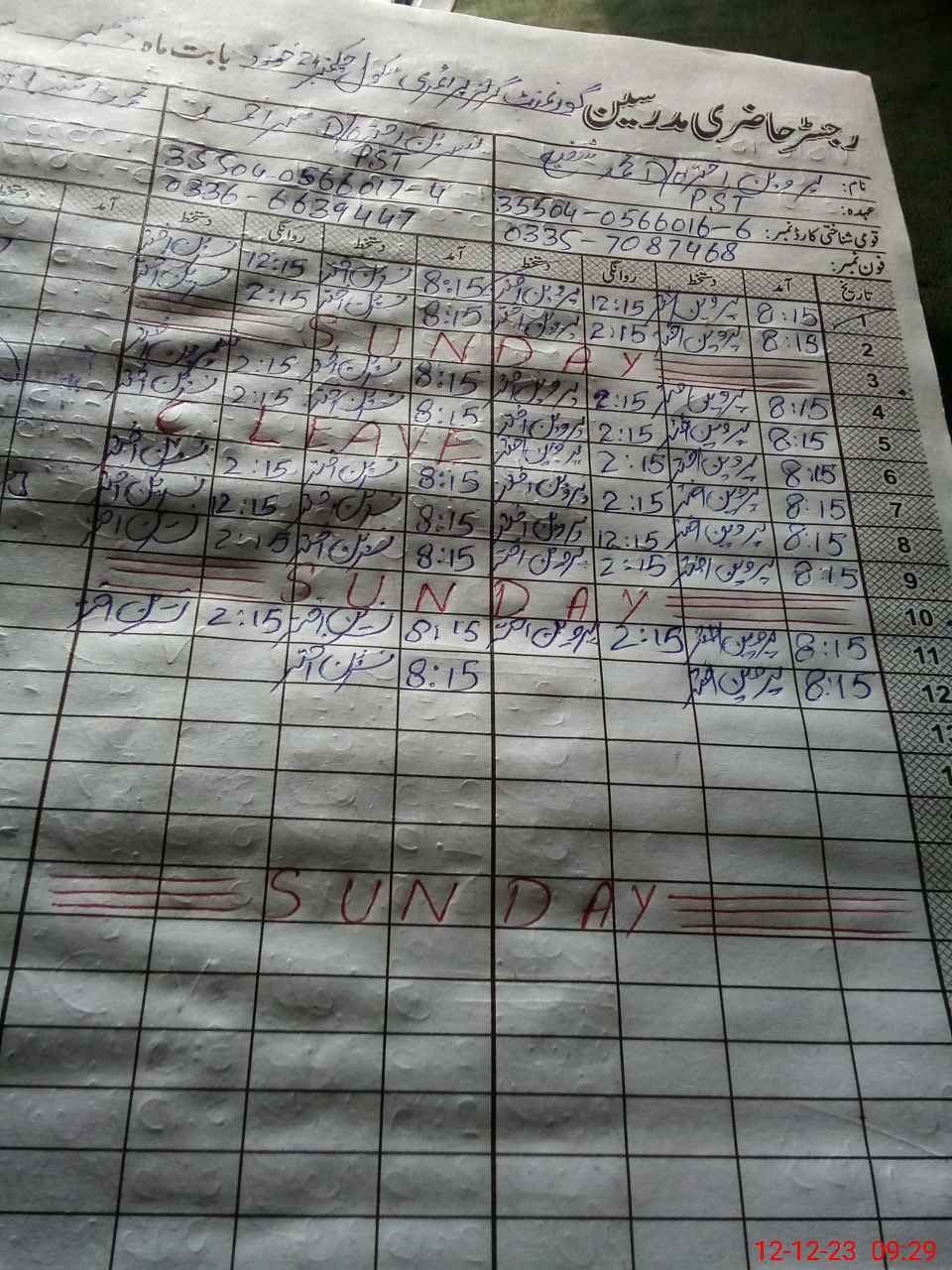 | Name: NA**** AK**** Designation: (School Headmaster's/Headmistress's) PST Phone/Cell Number: 03**** |