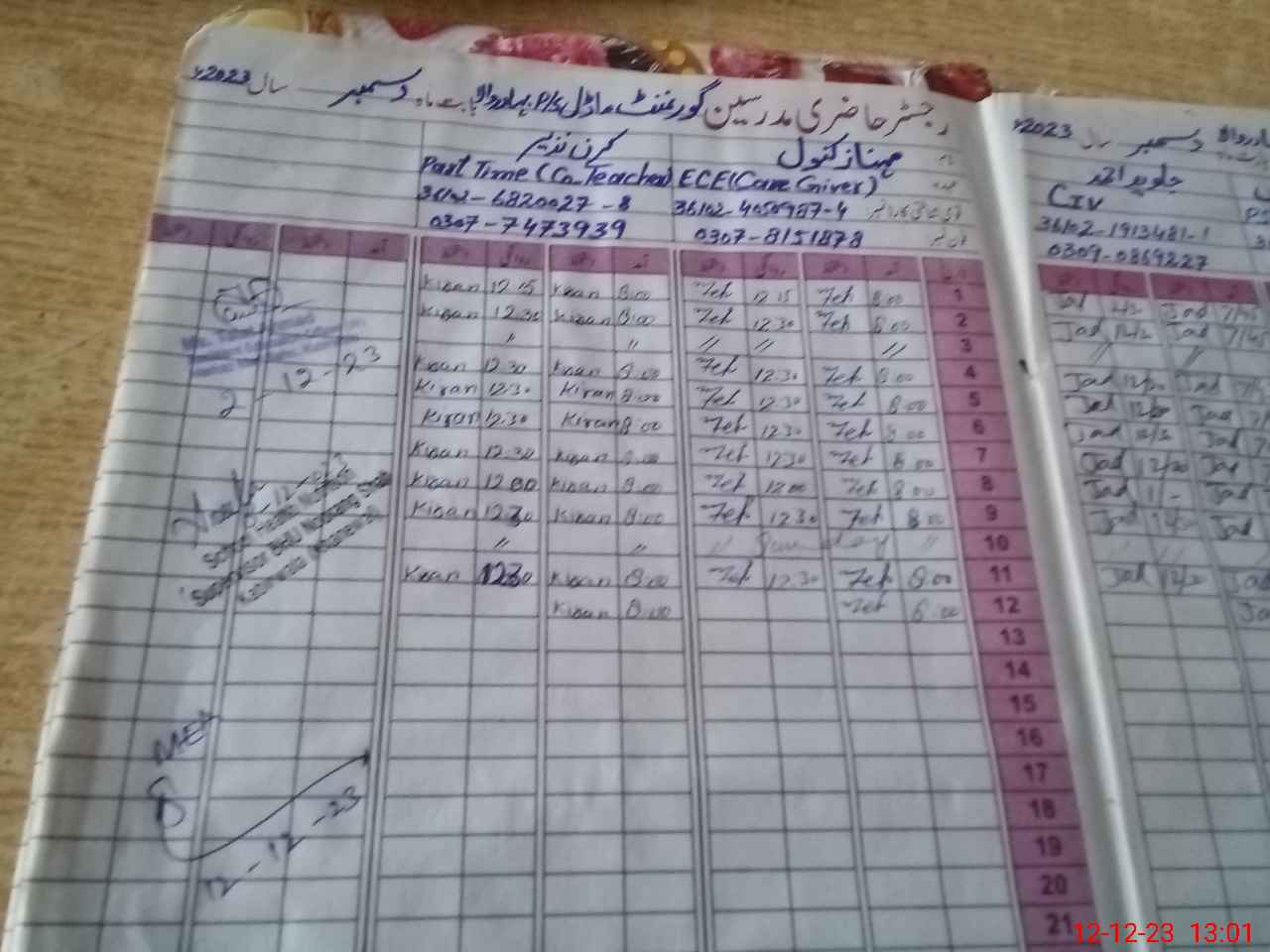 | Name: Um**** Ha**** Designation: (School Headmaster's/Headmistress's) PST Phone/Cell Number: 03**** |