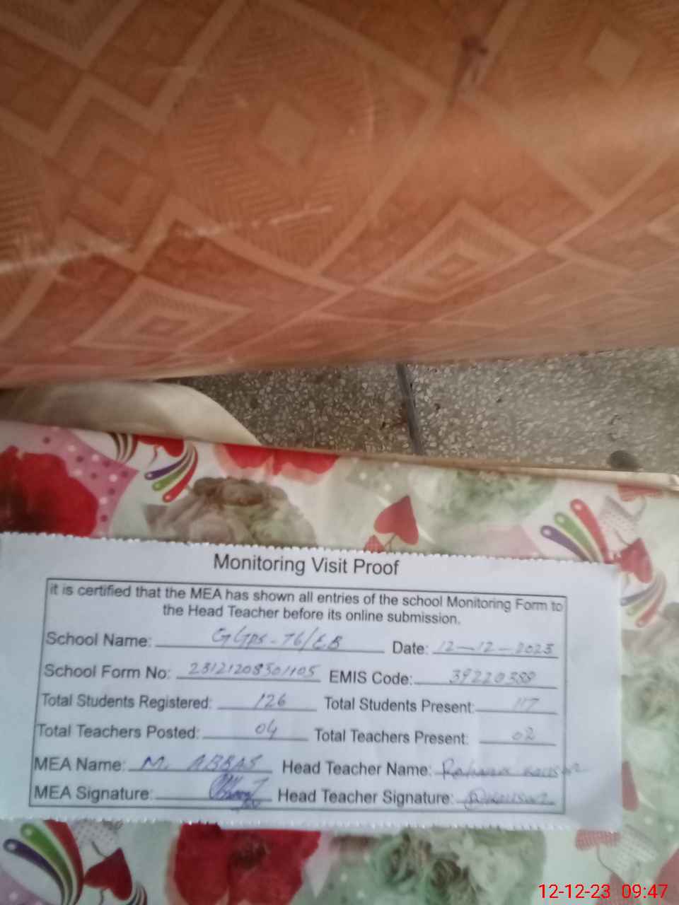 | EMIS Code: 39220388 | Name of School: GGPS 76 EB ARIFWALA | |||