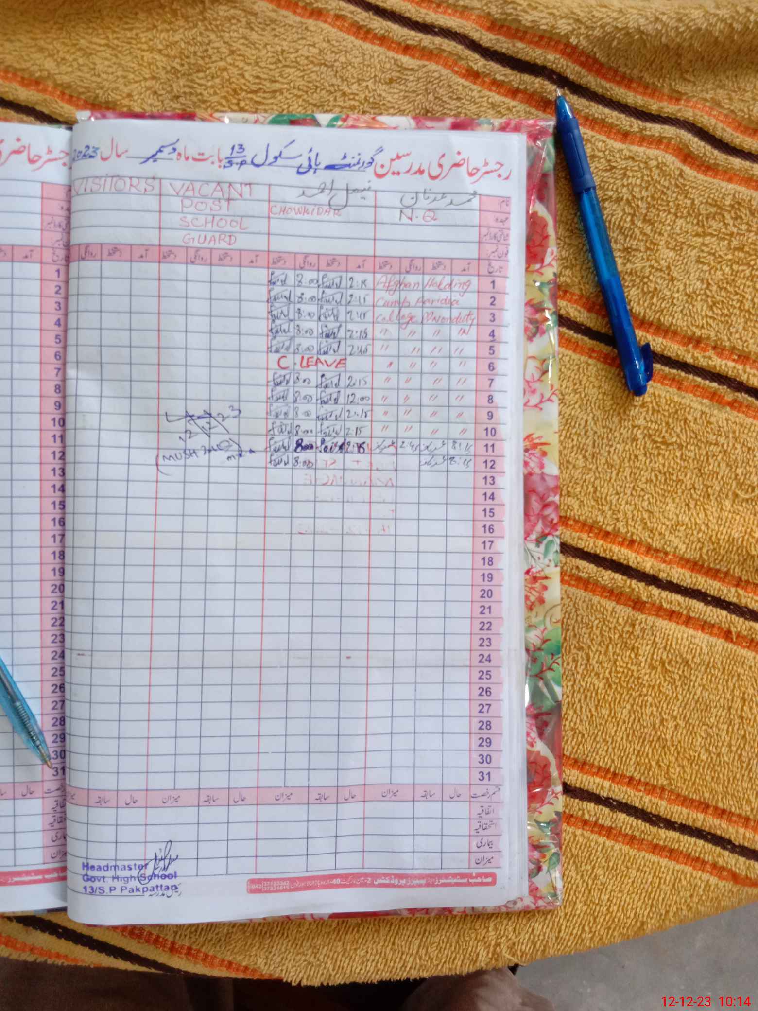 | District: PAKPATTAN | Tehsil: PAKPATTAN | Markaz: SECONDARY-WING | Level: High | |