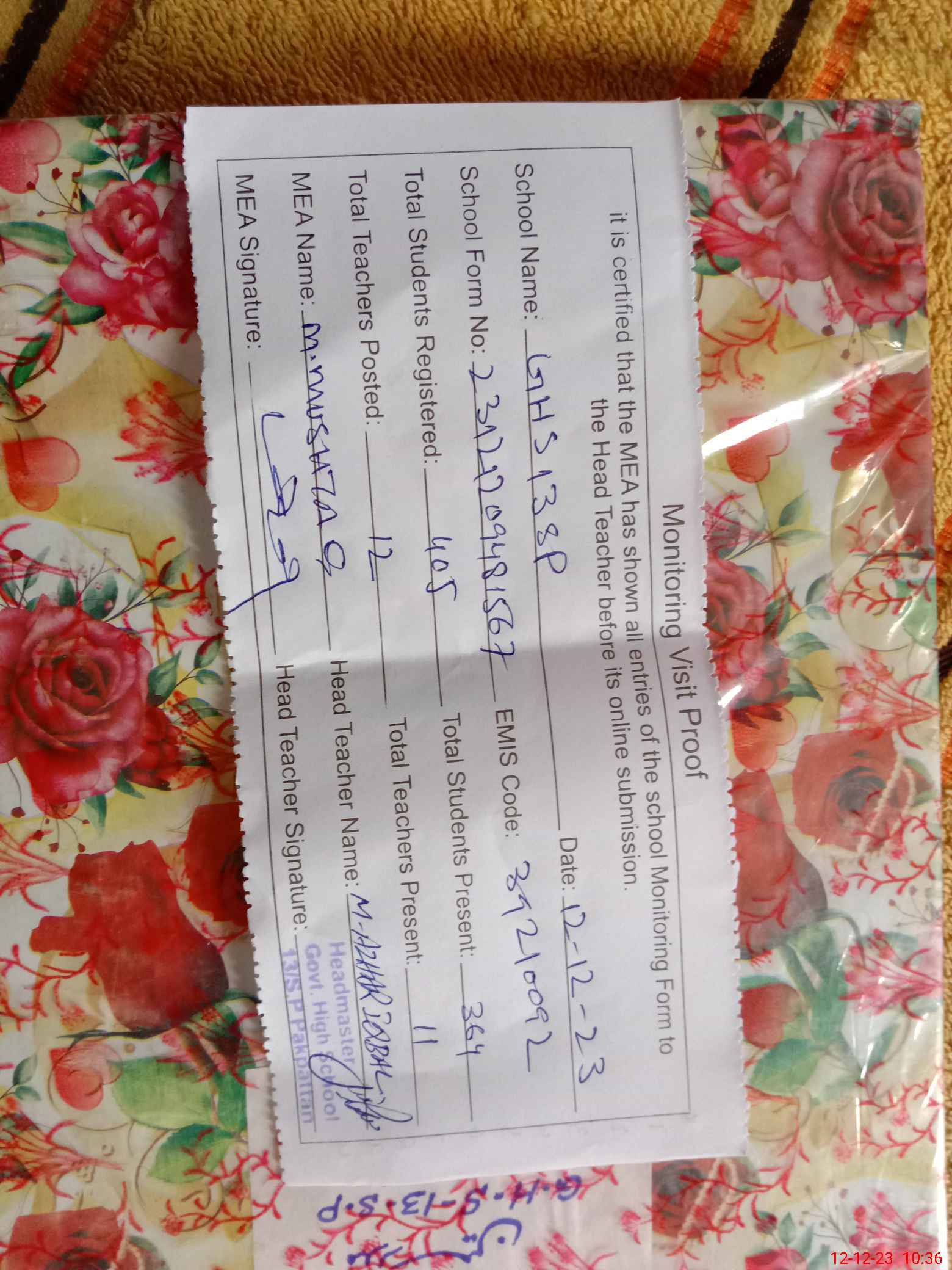 | EMIS Code: 39210092 | Name of School: GHS 13/SP P.O PAKPATTAN | |||