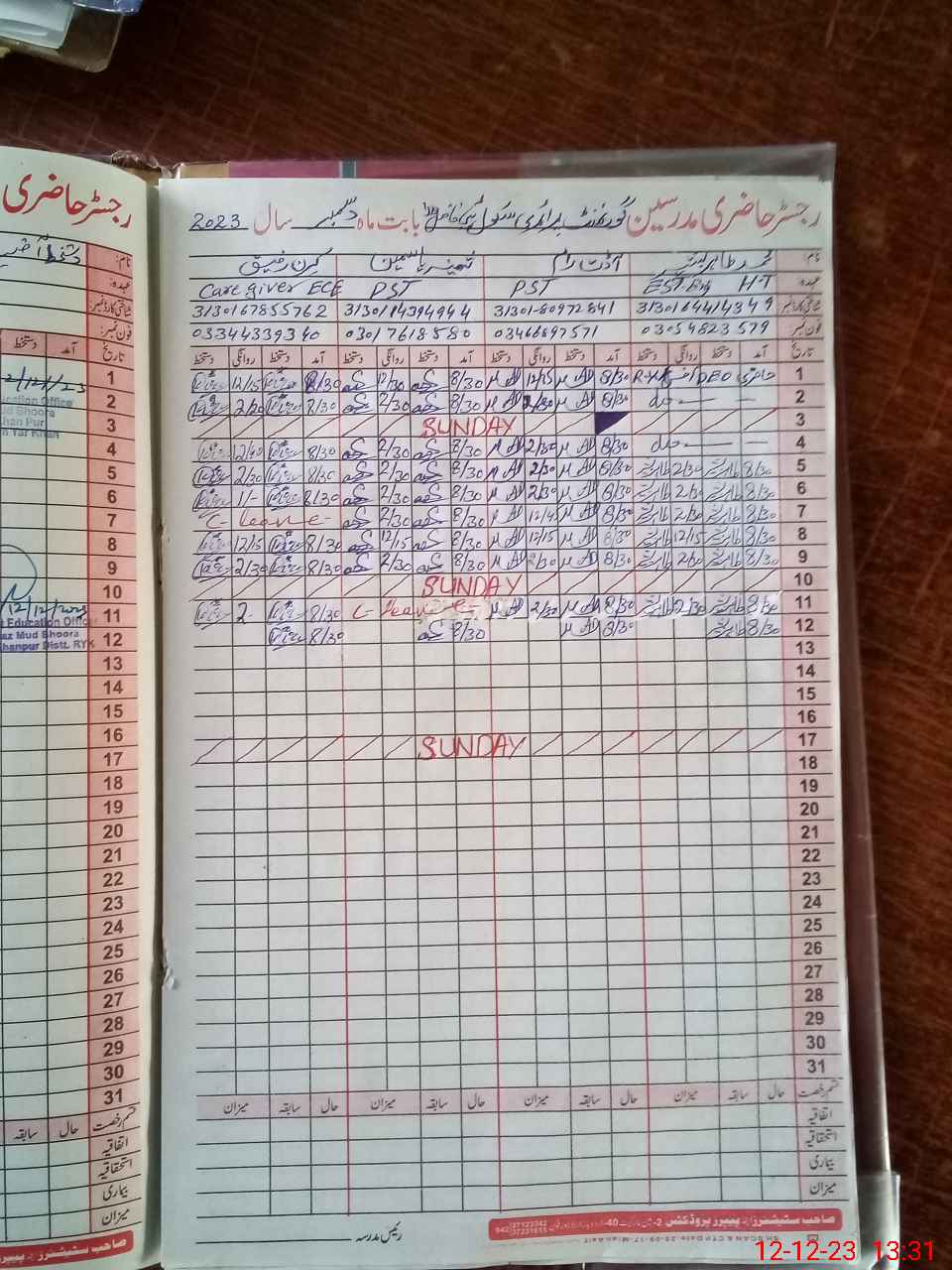| CNIC | Full Name | Designation | R/C | Absence During Last Calender Month |