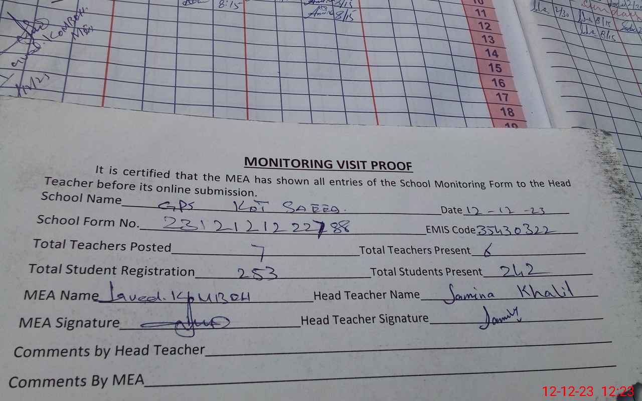 | EMIS Code: 35430322 | Name of School: GPS KOT SAEED | |||