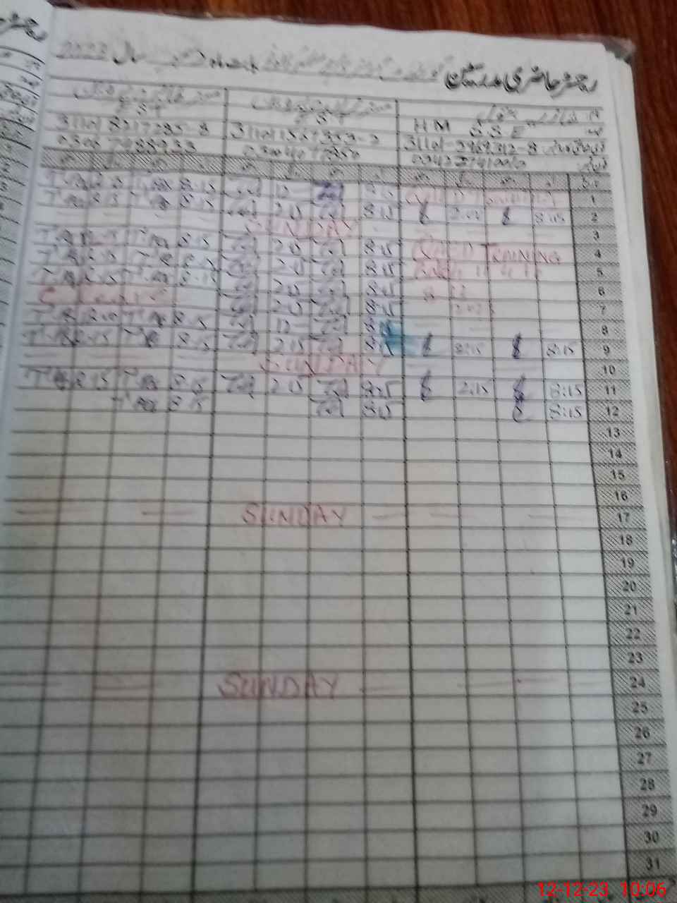 | CNIC | Full Name | Designation | R/C | Absence During Last Calender Month |