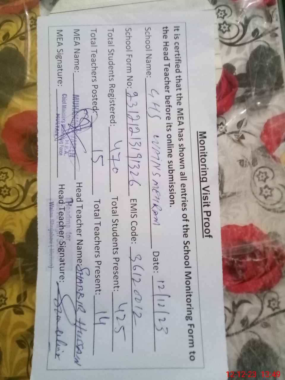 | EMIS Code: 36120012 | Name of School: GHS WAINS MEHRAM BASTI TEH. SHUJABAD | |||
