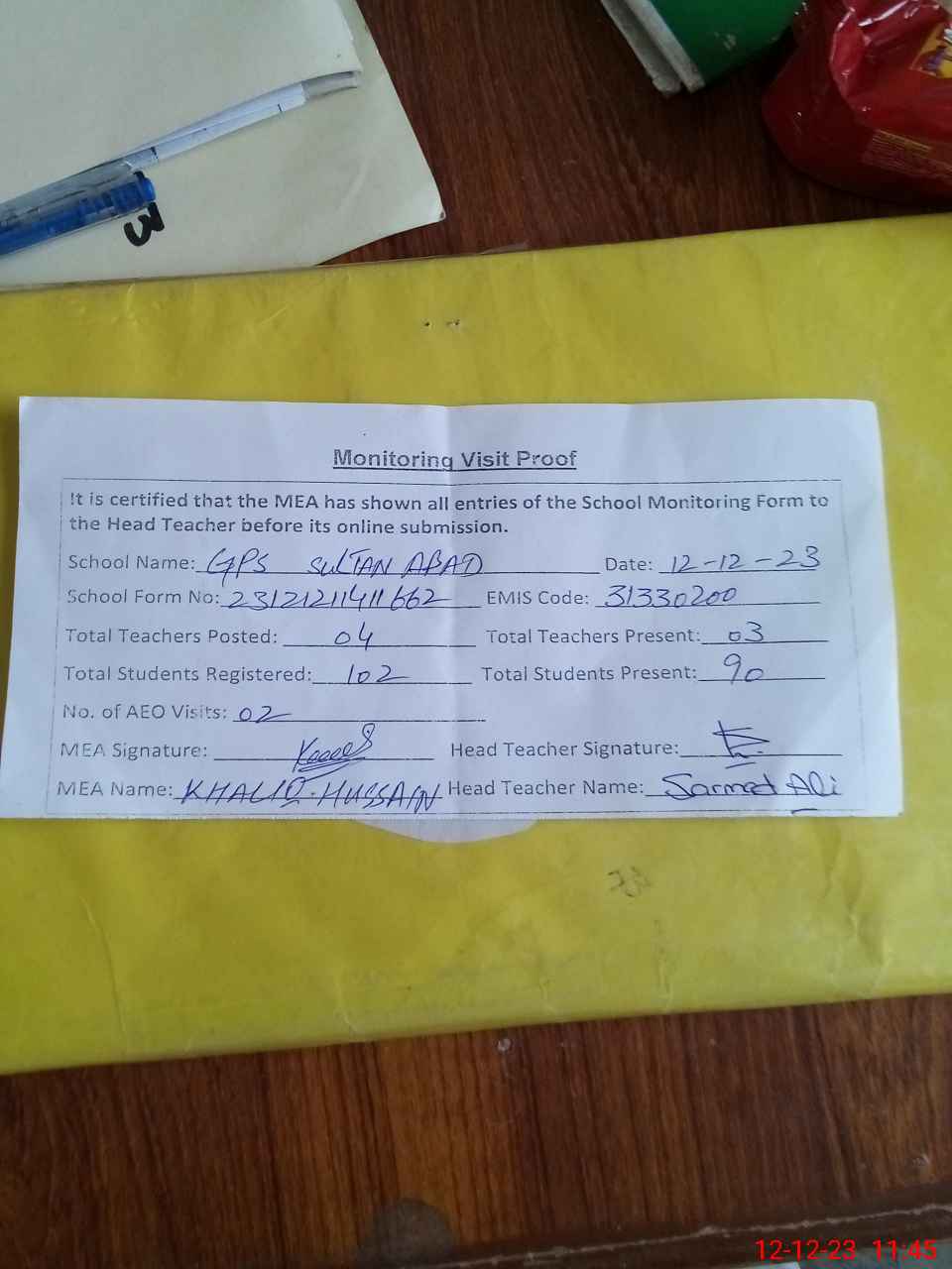 | EMIS Code: 31330200 | Name of School: GPS SULTAN ABAD | |||