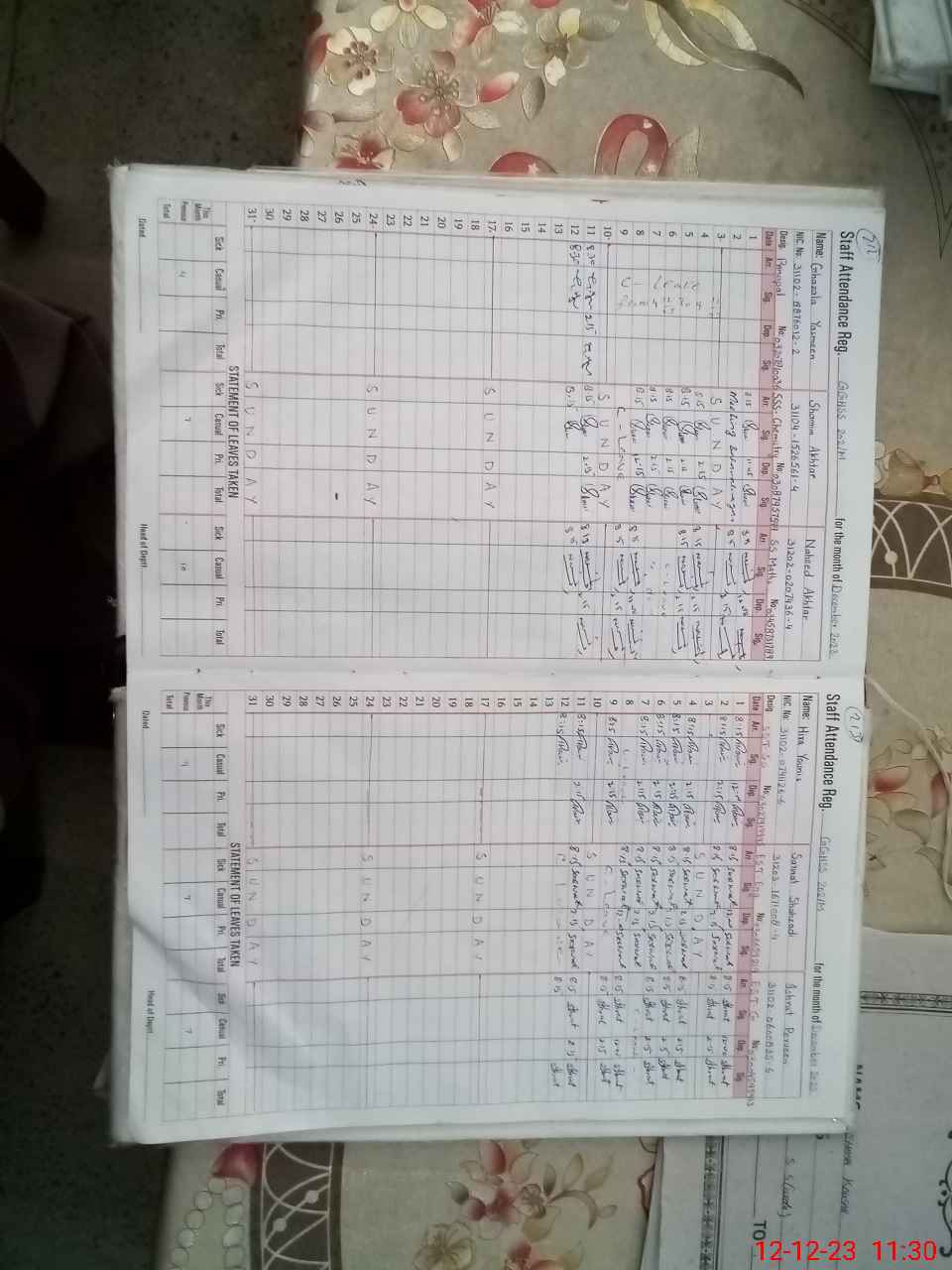 | 31**** | Ad**** Mu**** | LIB CLERK | 0 | 0 | 30 | 0 | 0 | 0 | 0 | 0 | 0 | Absent (Un-Authorized) | |