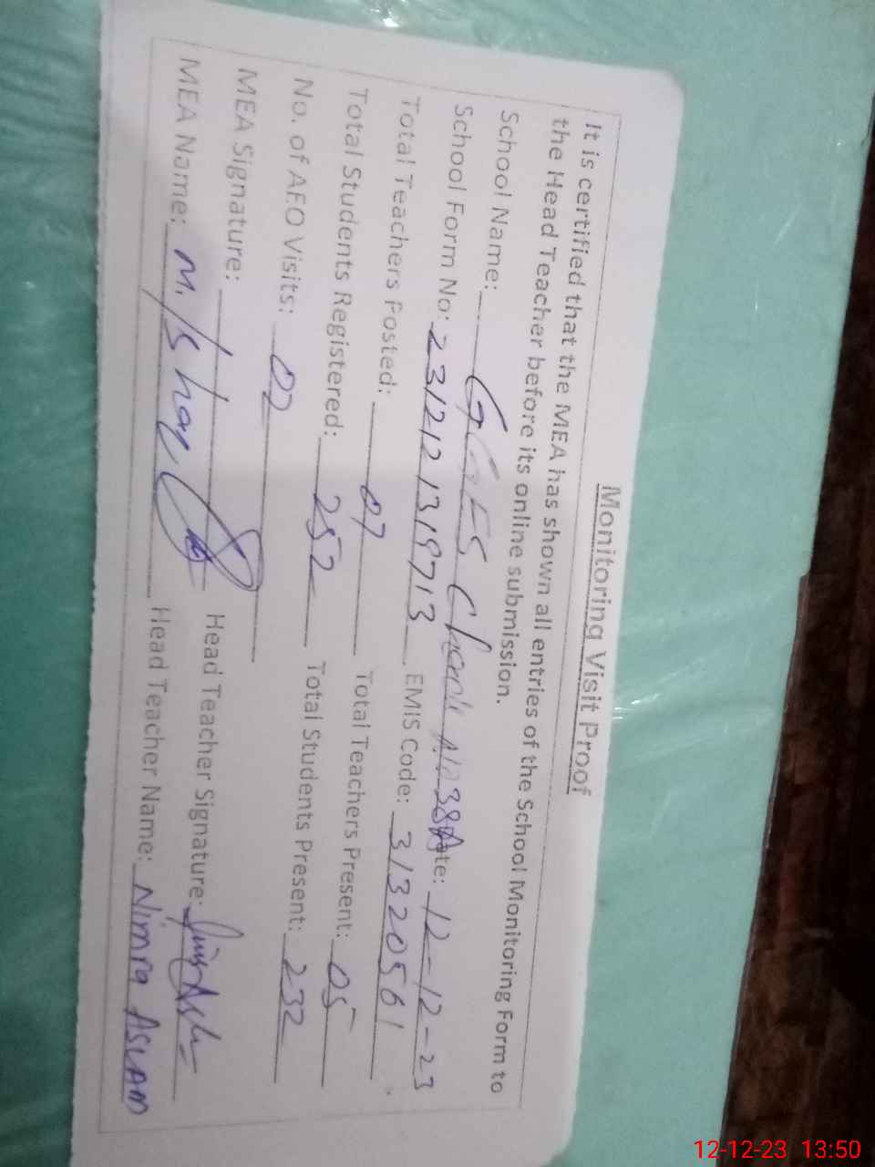 | EMIS Code: 31320561 | Name of School: GGES CHAK 38/A | |||