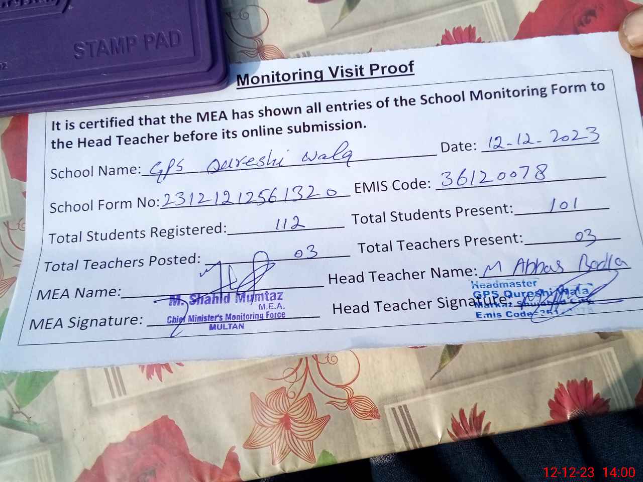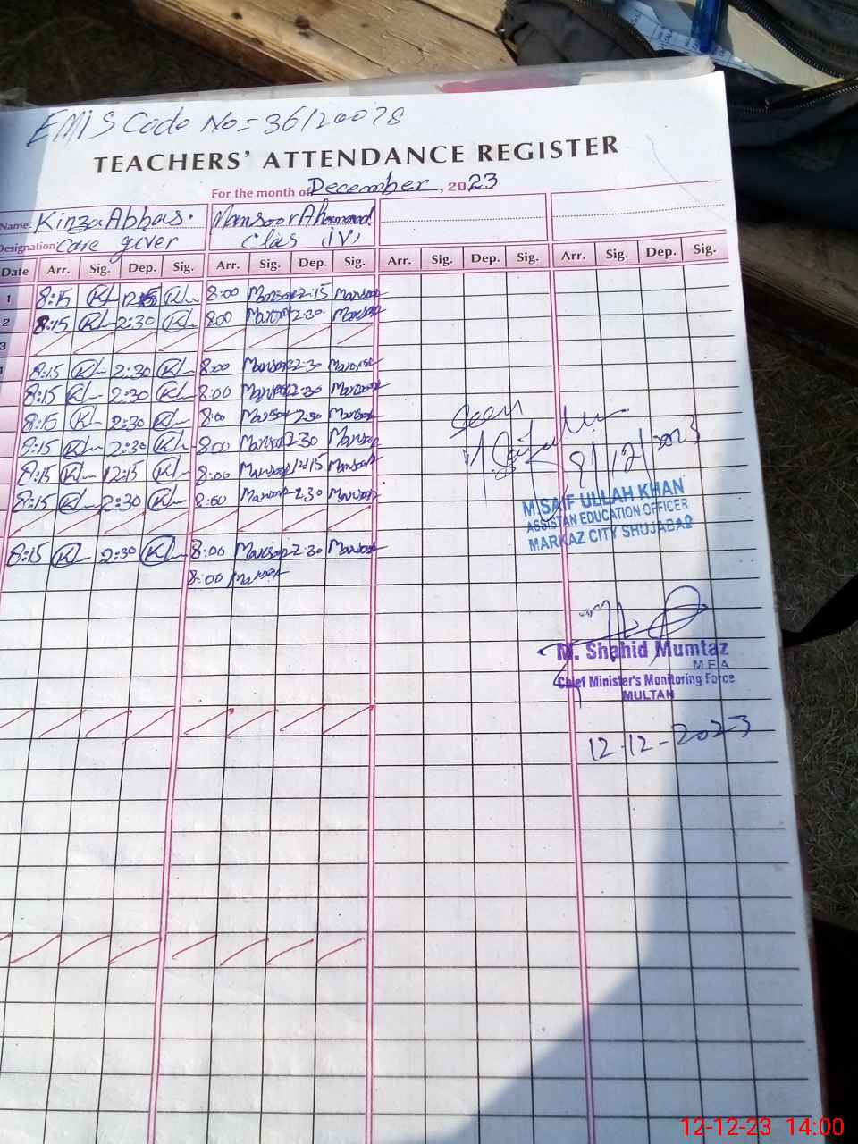 | EMIS Code: 36120078 | Name of School: GPS QURESHI WALA P.O AGHAR KHANI TEH SHUJABAD | |||