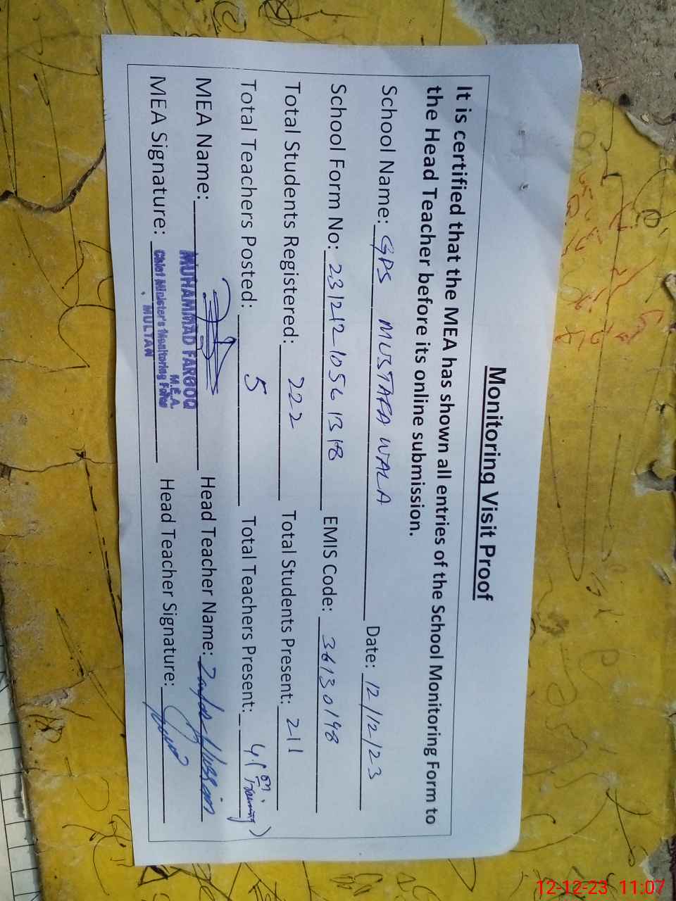 | EMIS Code: 36130148 | Name of School: GPS MUSTAFA WALA | |||