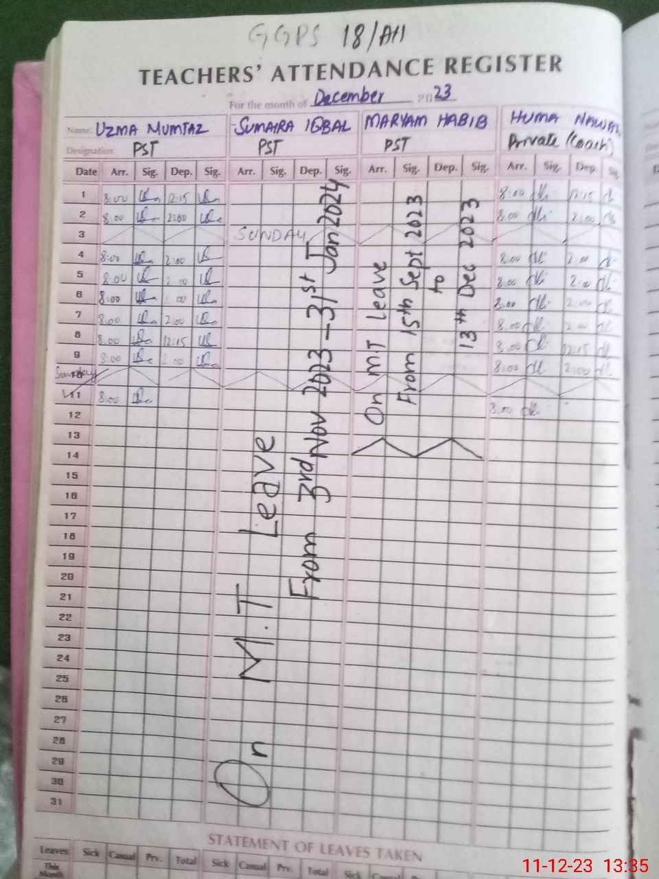 | 36**** | Ma**** Ha**** | Contract | 30 | 0 | 0 | 30 | 0 | 0 | 0 | 0 | 0 | Maternity | |