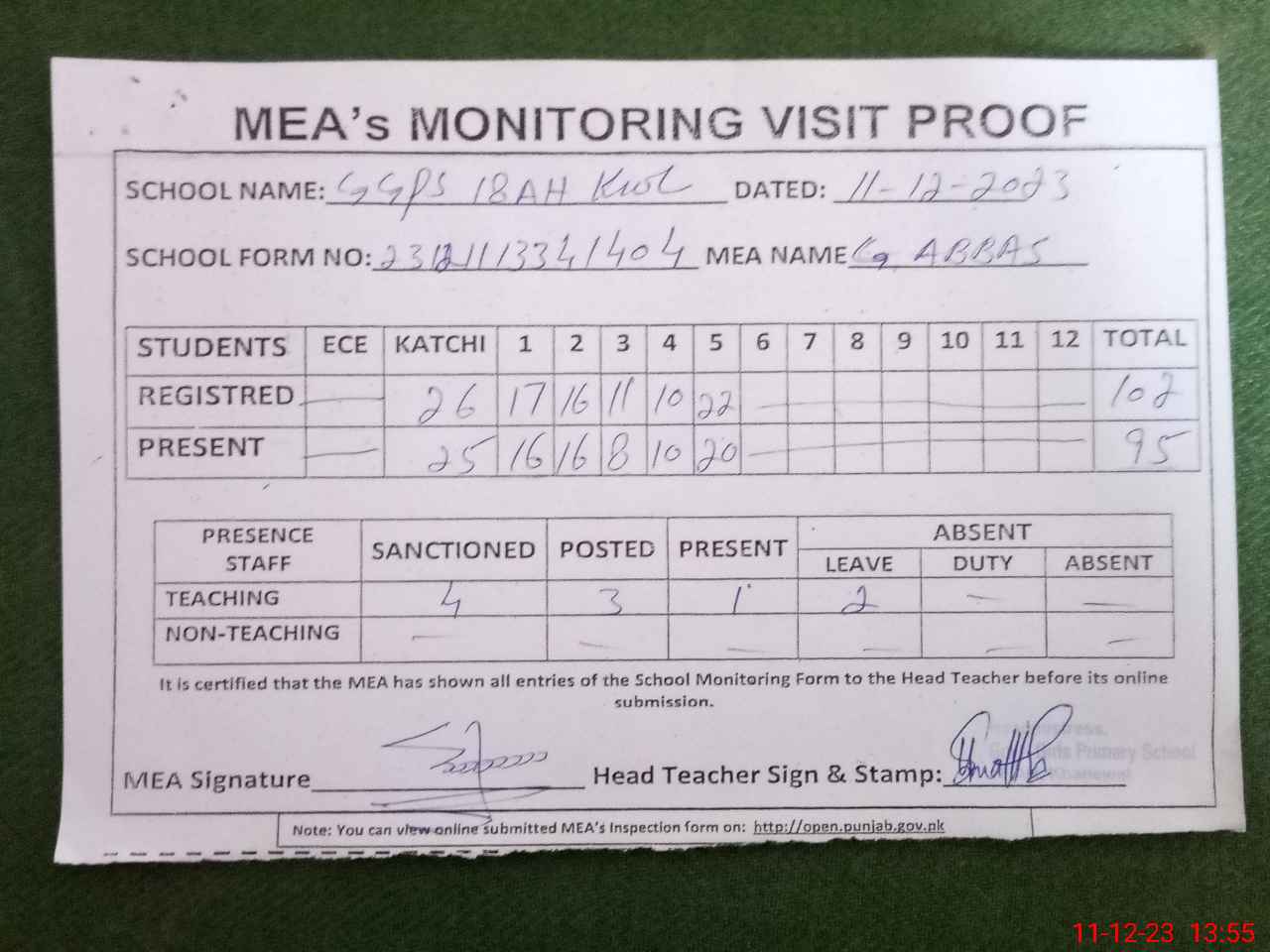 | EMIS Code: 36420396 | Name of School: GGPS 18/AH, KHANEWAL | |||