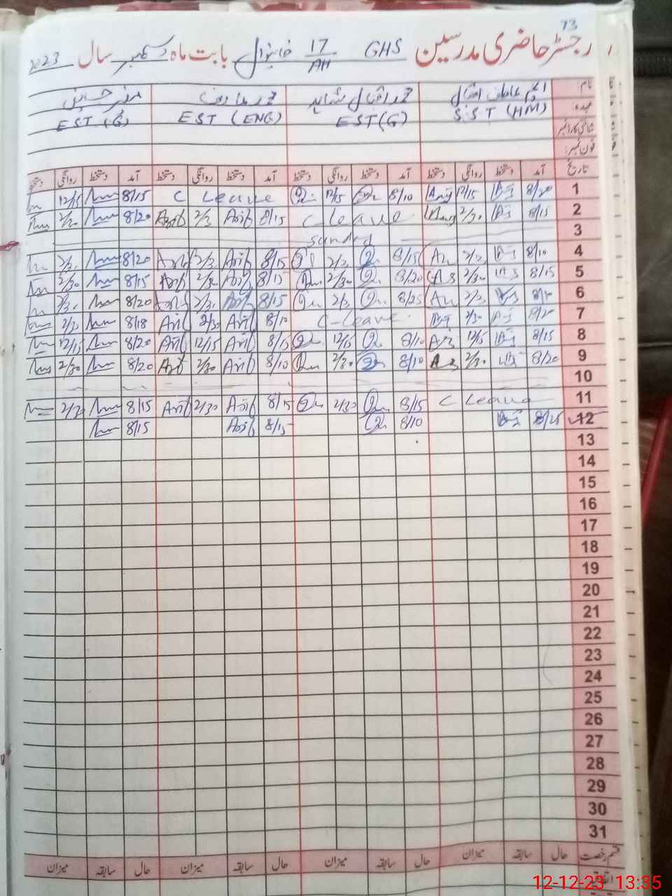 | CNIC | Full Name | Designation | R/C | Absence During Last Calender Month |