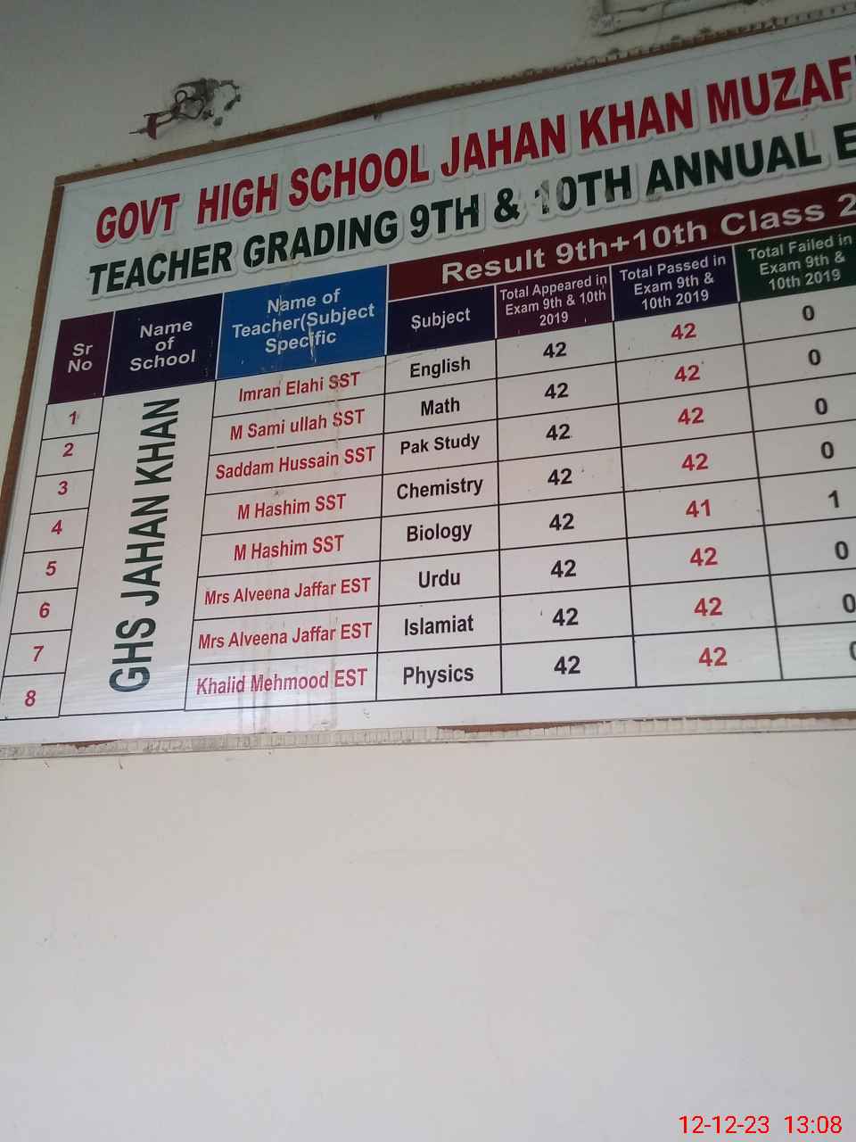 | EMIS Code: 32320048 | Name of School: GHS JAHAN KHAN | |||