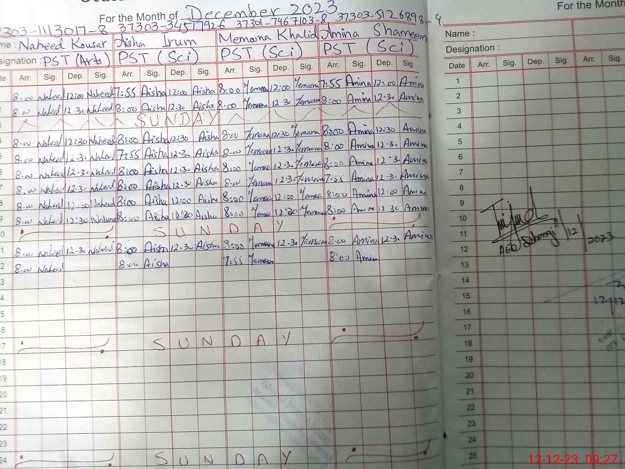 | CNIC | Full Name | Designation | R/C | Absence During Last Calender Month |