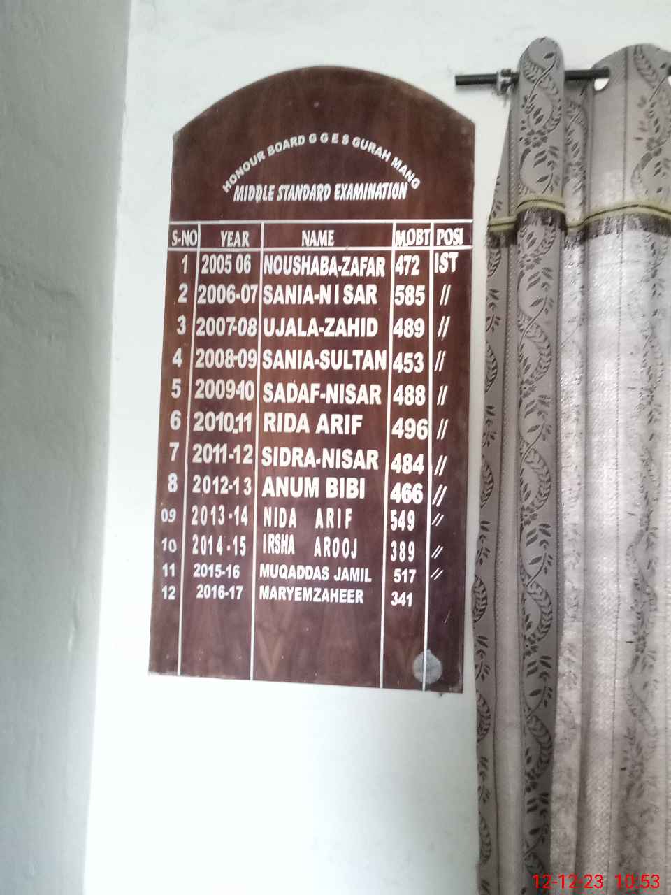 | List of Eligible Students for Receipt of Stipend (Displayed on School Notice Board): | |