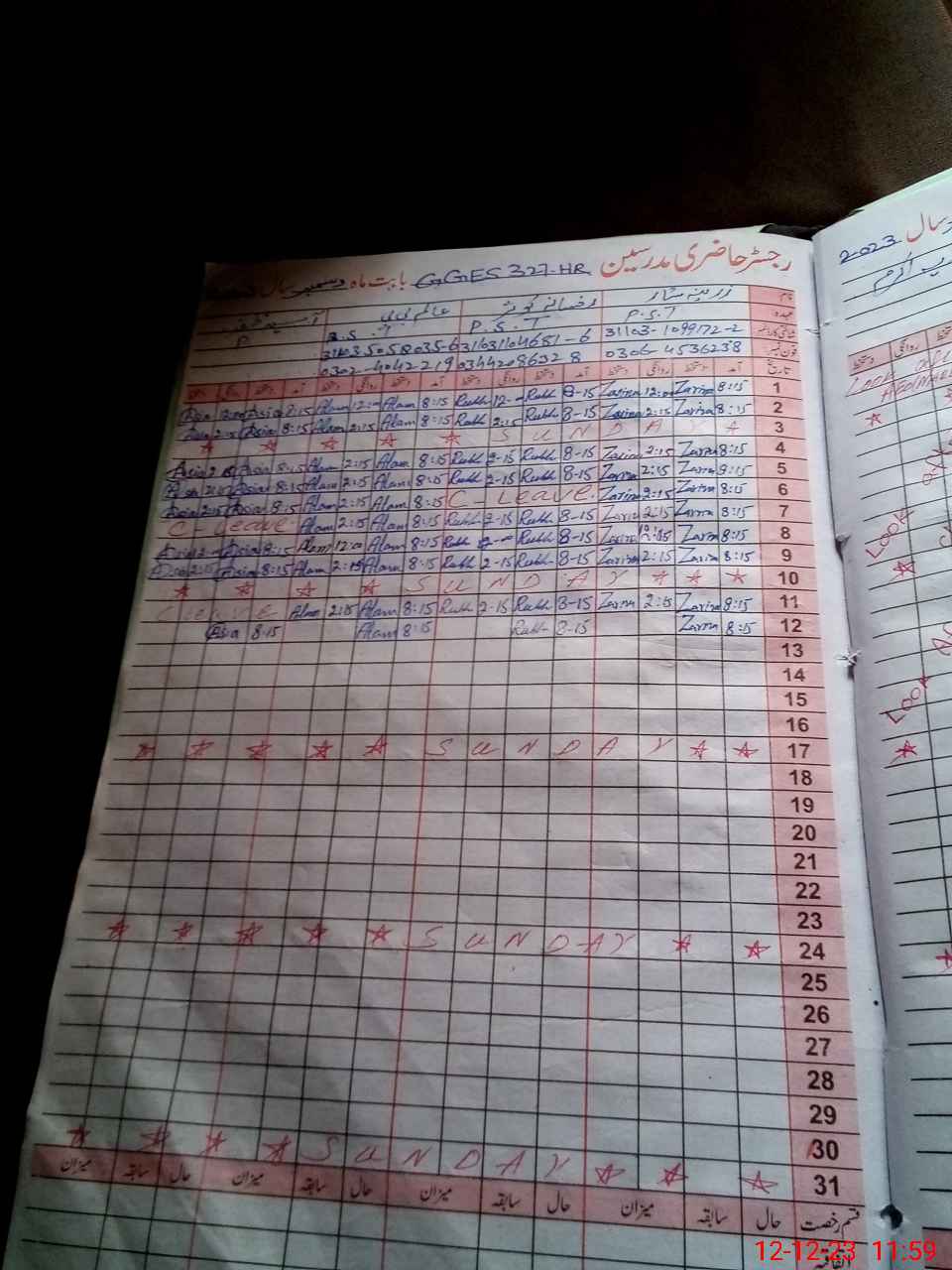 | CNIC | Full Name | Designation | R/C | Absence During Last Calender Month |