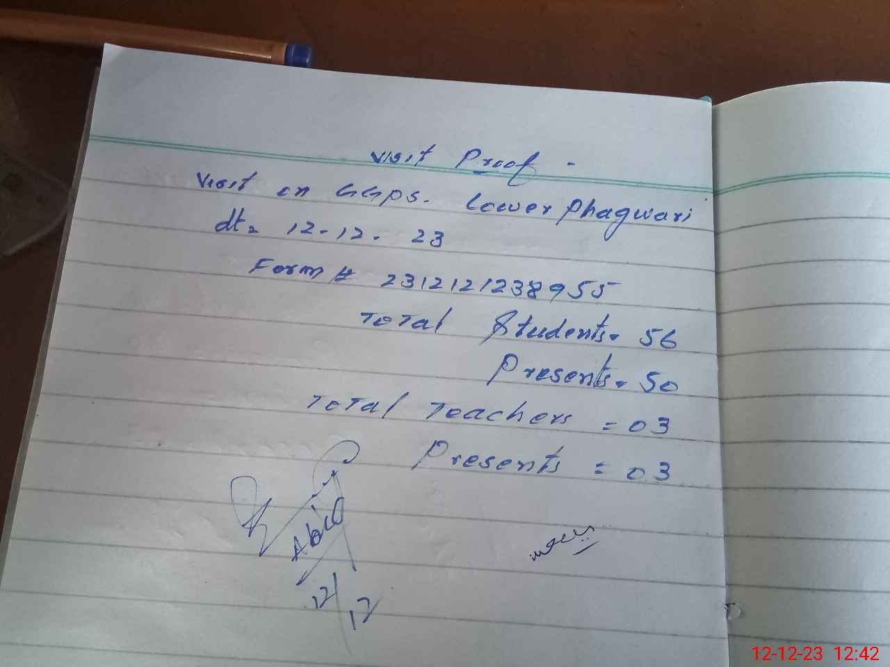 | EMIS Code: 37320193 | Name of School: GGPS LOWER PAGHWARI | |||