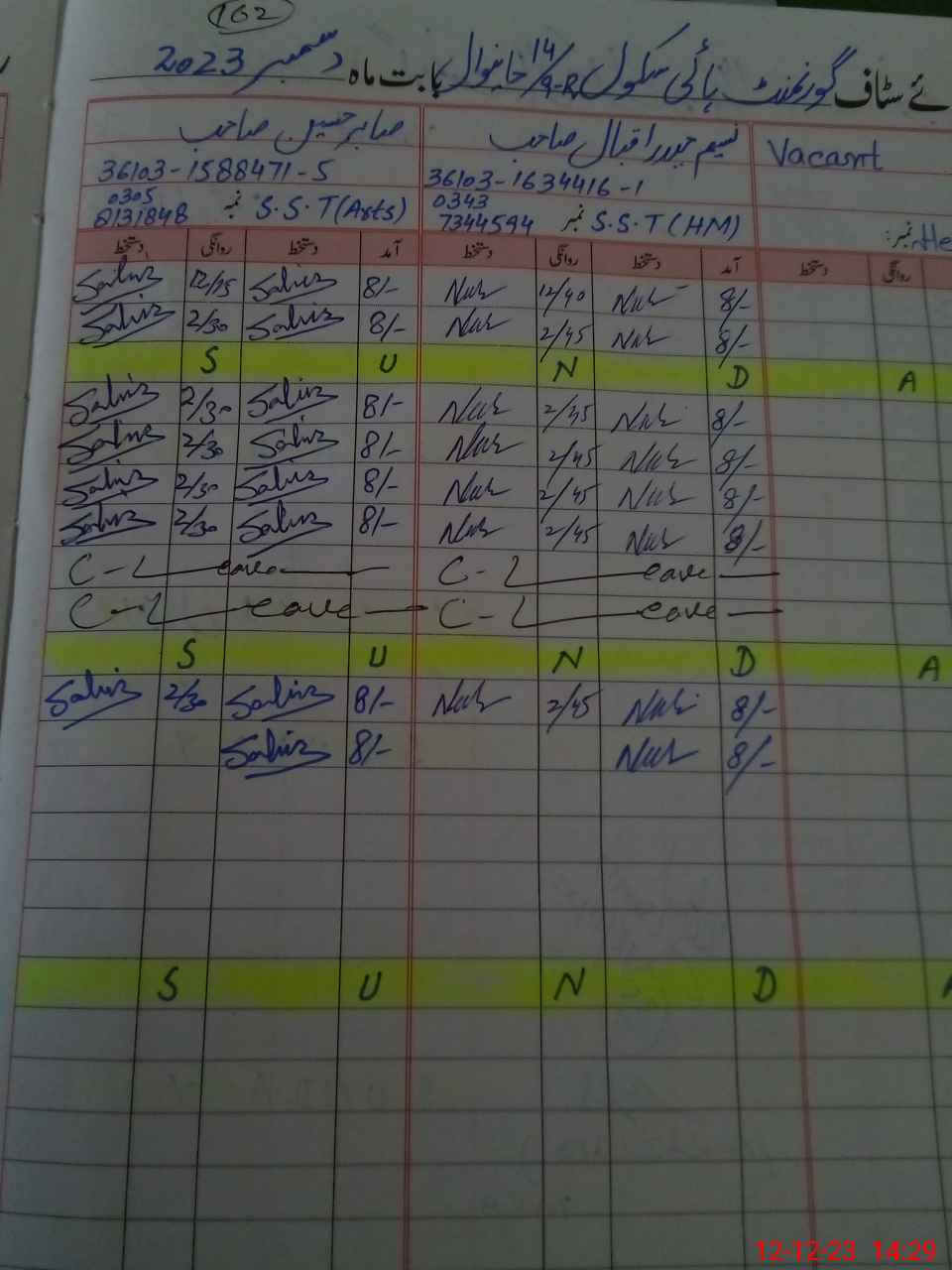| CNIC | Full Name | Designation | R/C | Absence During Last Calender Month |