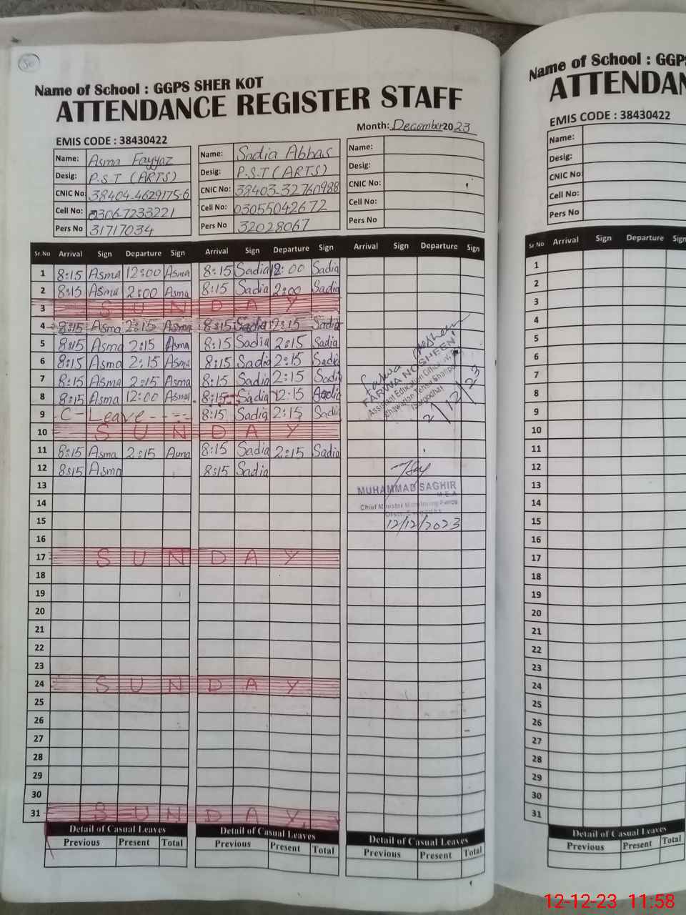| Name: AS**** FA**** Designation: (School Headmaster's/Headmistress's) PST Phone/Cell Number: 03**** |