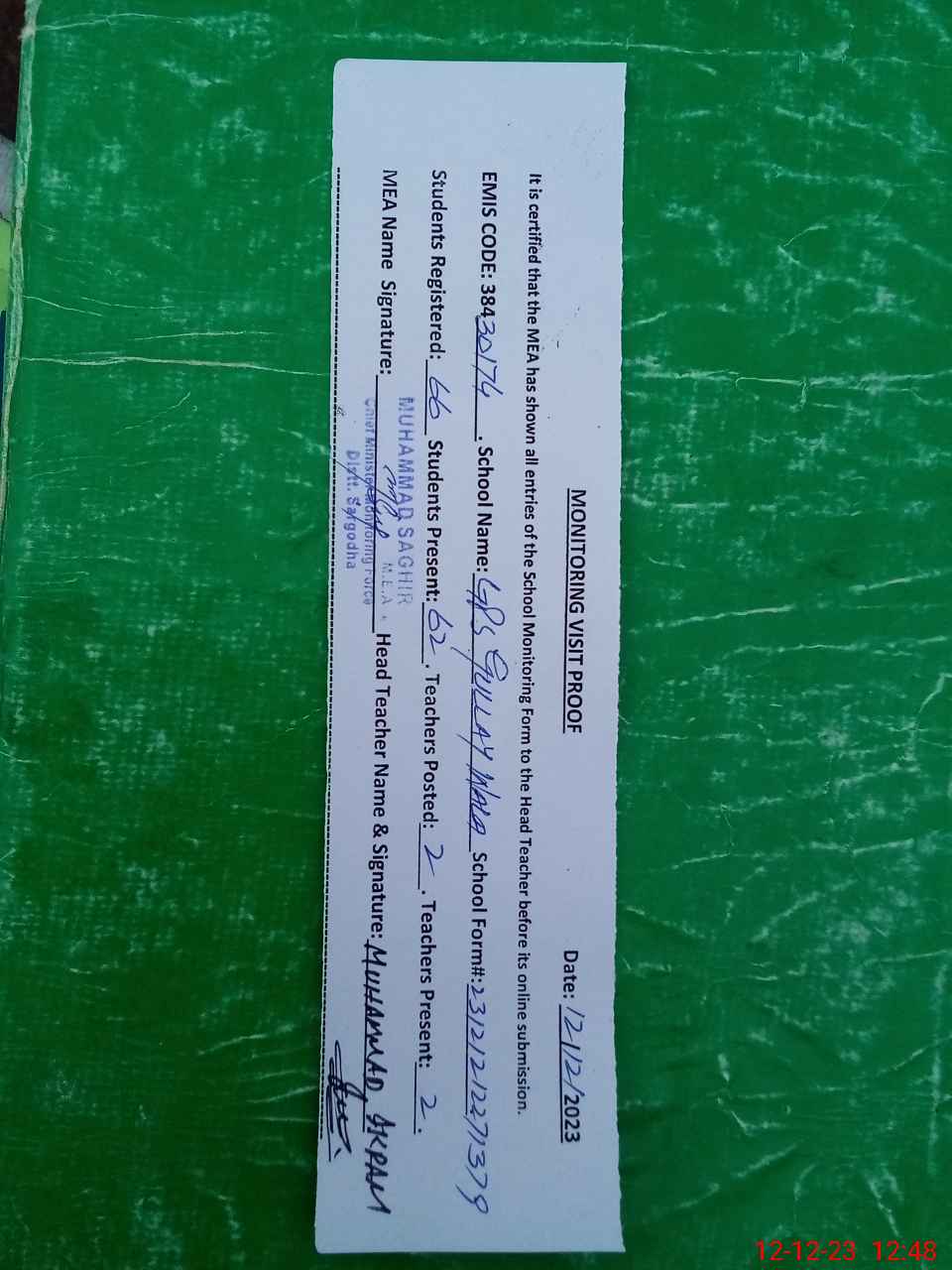 | EMIS Code: 38430174 | Name of School: GPS GULLEY WALA | |||