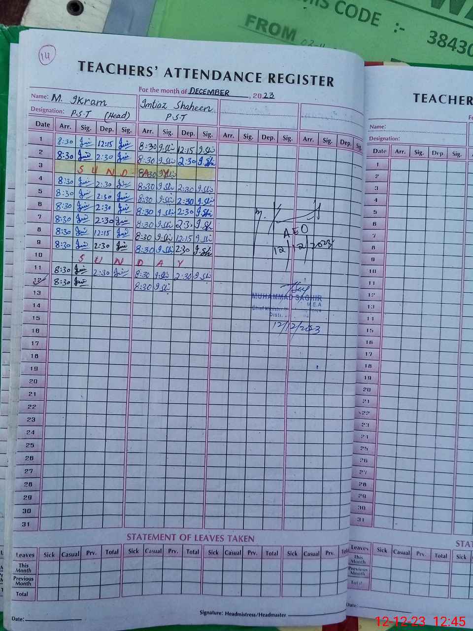| Name: MU**** IK**** Designation: (School Headmaster's/Headmistress's) PST Phone/Cell Number: 03**** |