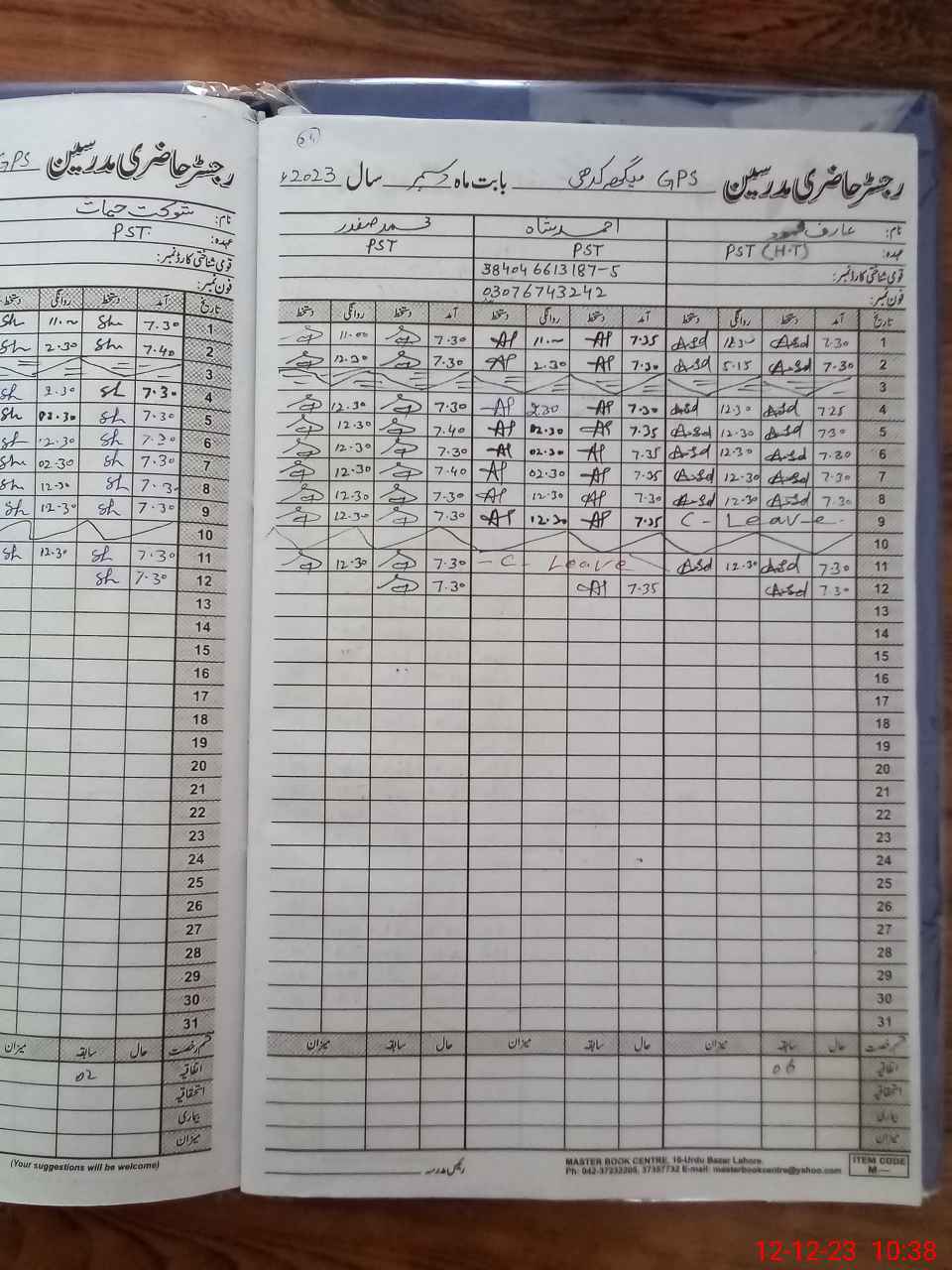 | Name: AR**** MA**** Designation: (School Headmaster's/Headmistress's) PST Phone/Cell Number: 03**** |
