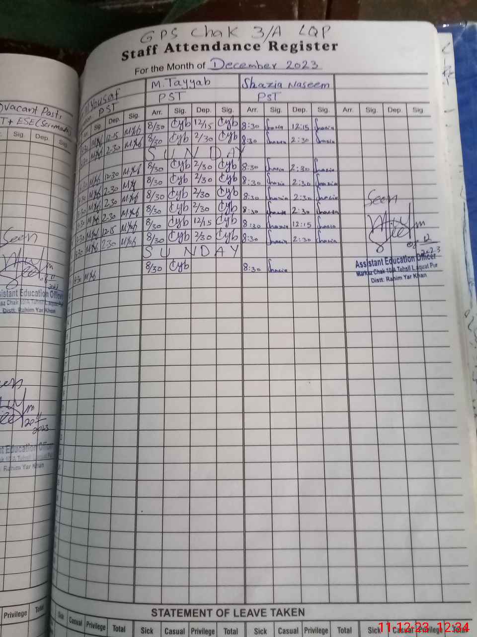 | Name: MU**** YO**** Designation: (School Headmaster's/Headmistress's) PST Phone/Cell Number: 03**** |