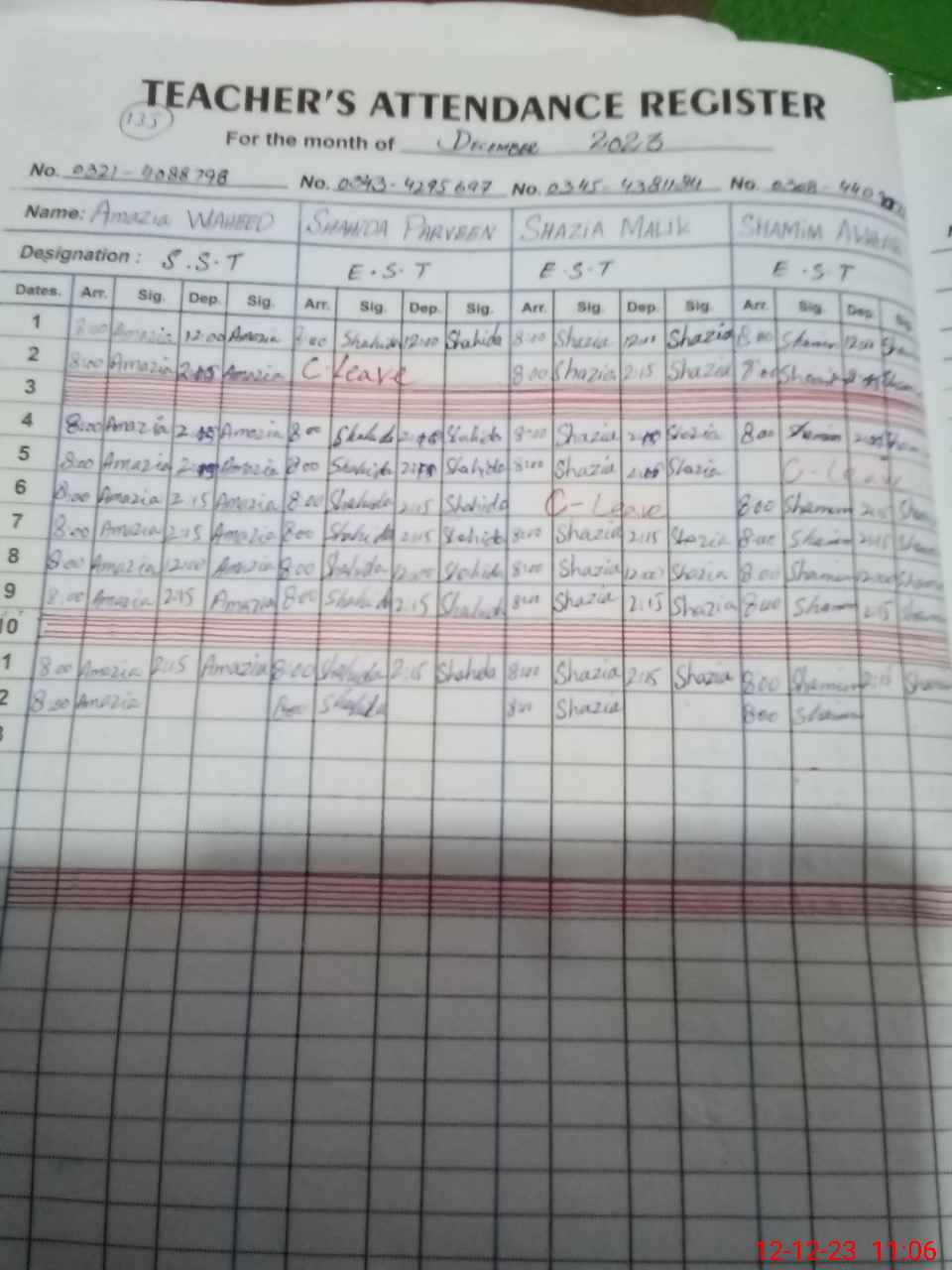 | Name: Am**** Wa**** Designation: (School Headmaster's/Headmistress's) SST Phone/Cell Number: 03**** |