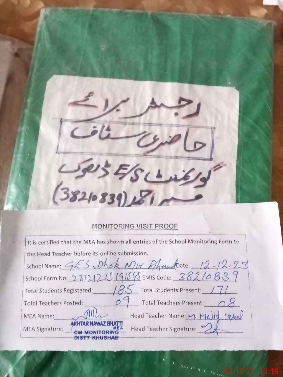 | EMIS Code: 38210839 | Name of School: GES DHOK MEER AHMED | |||