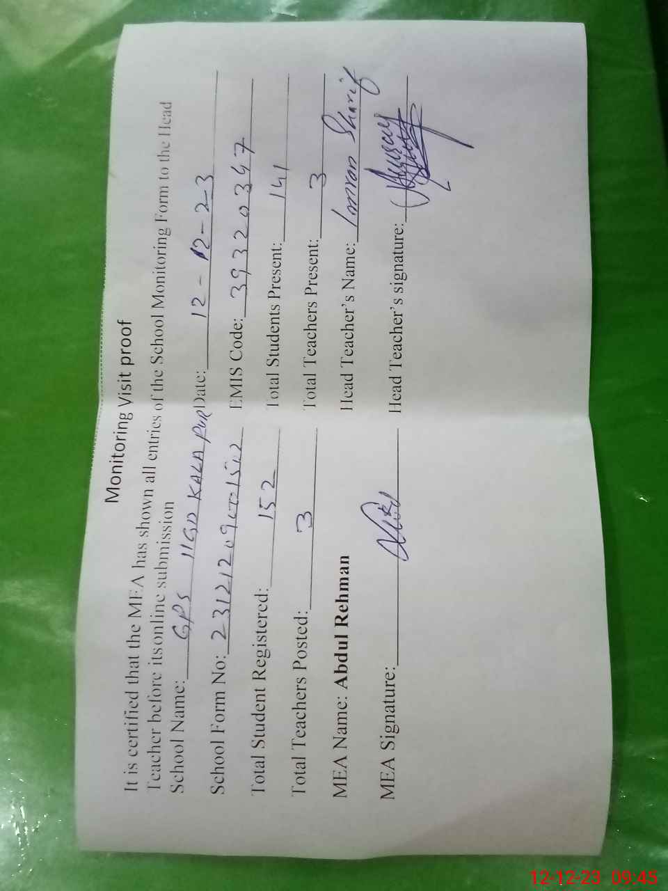 | EMIS Code: 39320347 | Name of School: GPS 11/G.D KALAPUR | |||