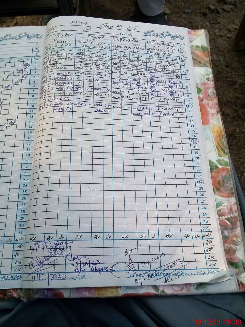 | CNIC | Full Name | Designation | R/C | Absence during last cal. month |