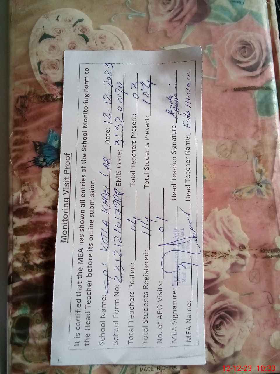 | EMIS Code: 31320090 | Name of School: GPS KOTLA KHAN LAR | |||