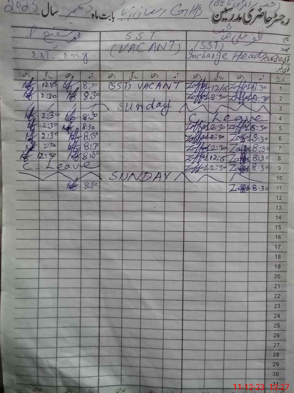 | Name: AB**** HA**** Designation: (School Headmaster's/Headmistress's) S.S.T.(GEN) Phone/Cell Number: 03**** |