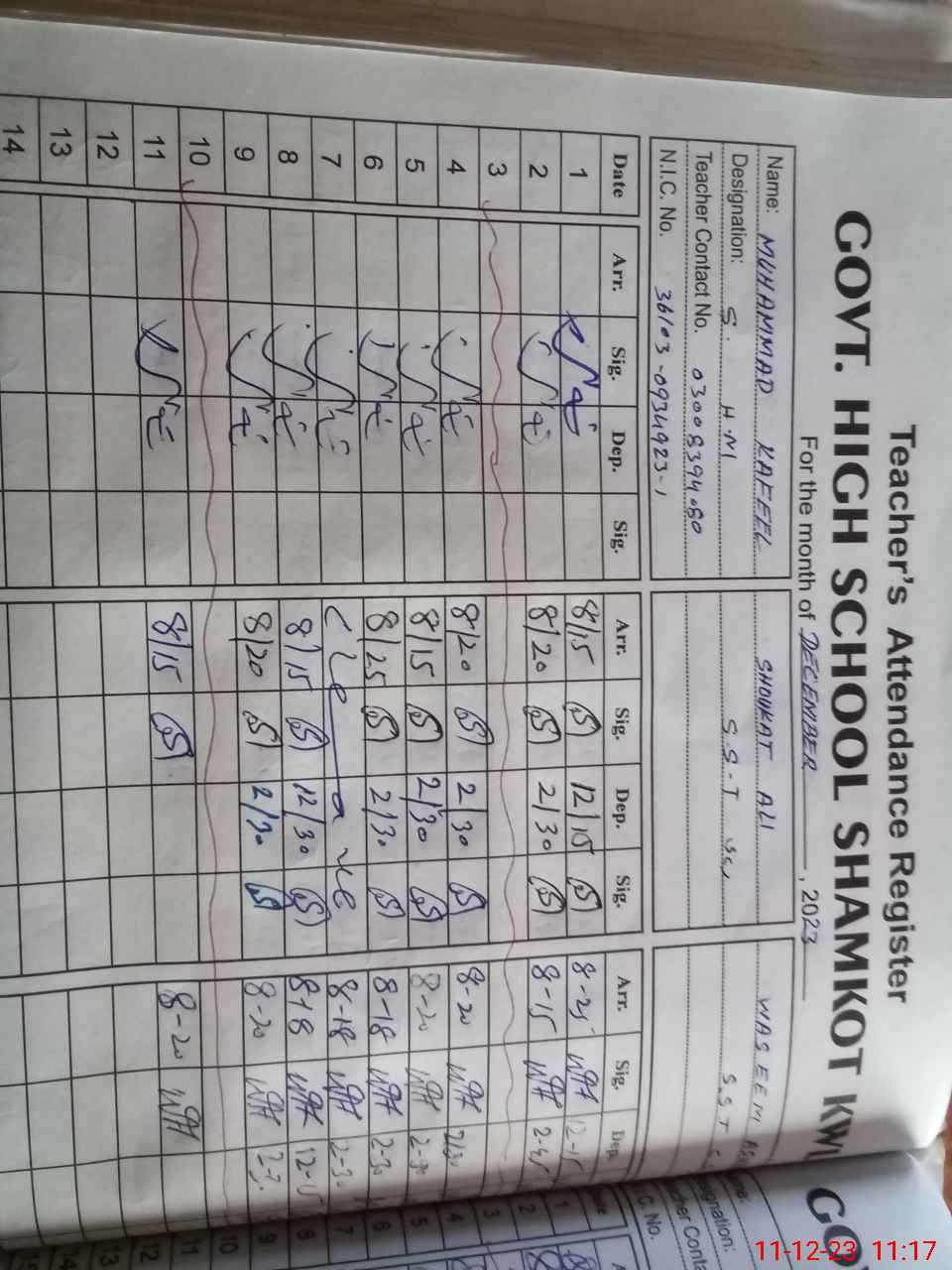 | Name: MKa**** Designation: (School Headmaster's/Headmistress's) Senior Headmaster Phone/Cell Number: 03**** |