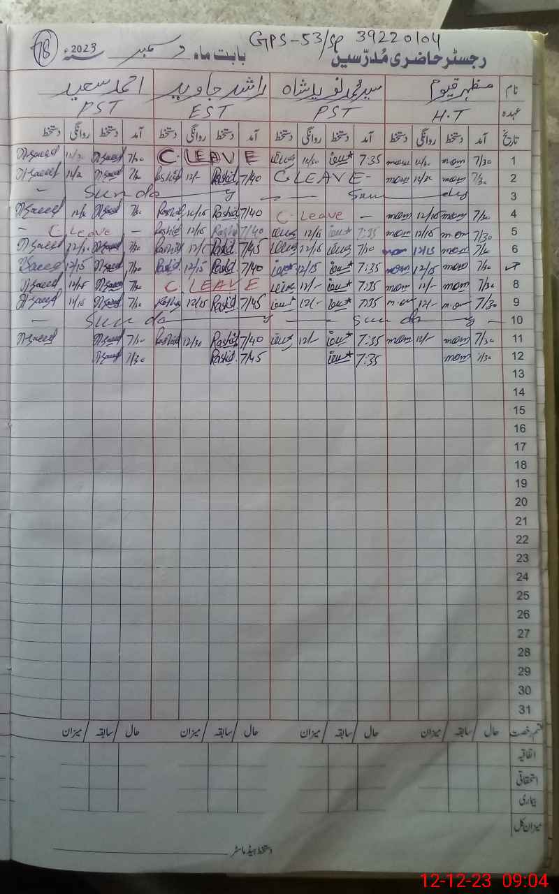 | Name: SY**** MU**** NA**** AL**** SH**** Designation: (School Headmaster's/Headmistress's) PST Phone/Cell Number: 03**** |