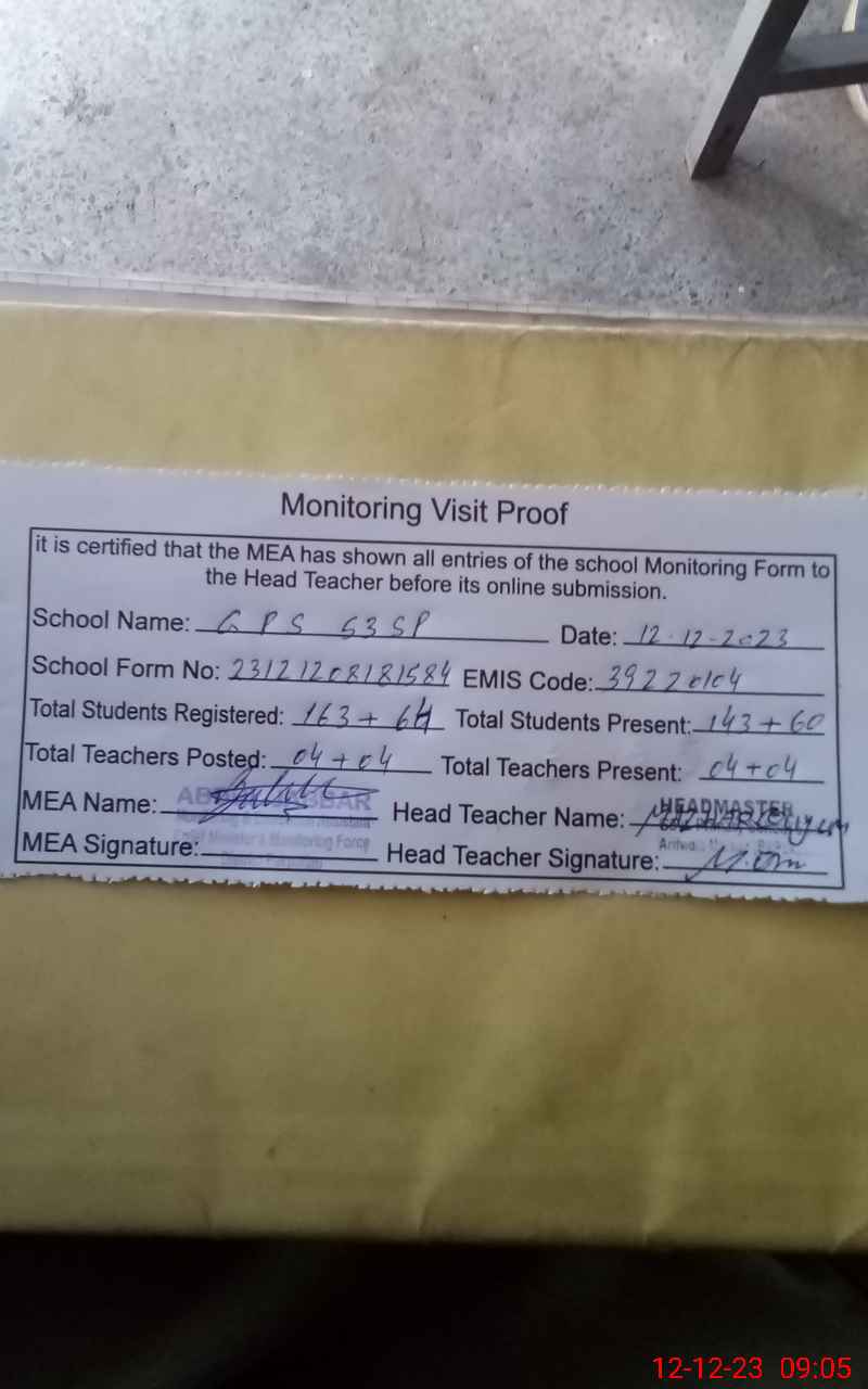 | EMIS Code: 39220104 | Name of School: GPS 53 SP | |||
