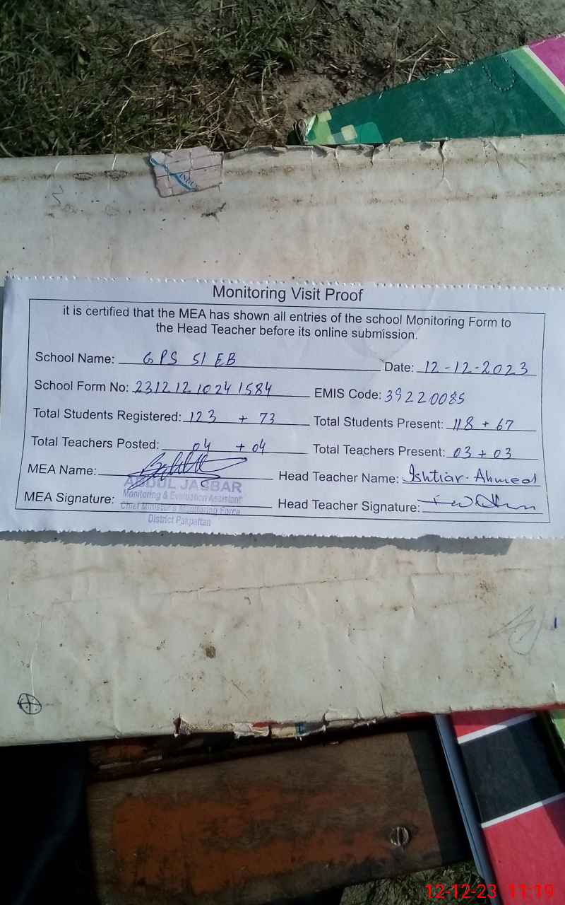 | Attendance Register | Head Teacher | MEA with School | Visit Proof |