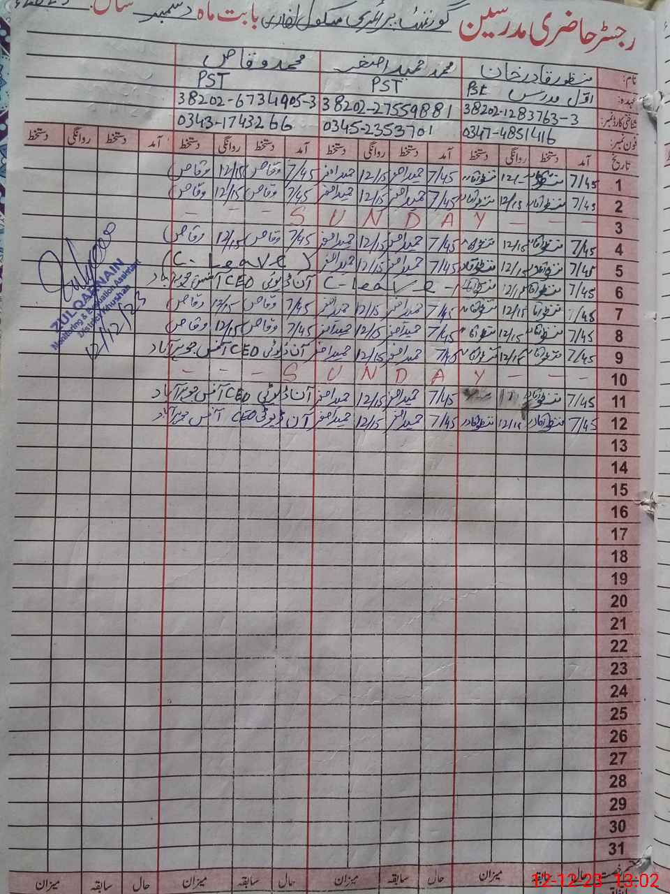 | Name: MA**** QA**** Designation: (School Headmaster's/Headmistress's) PST Phone/Cell Number: 03**** |