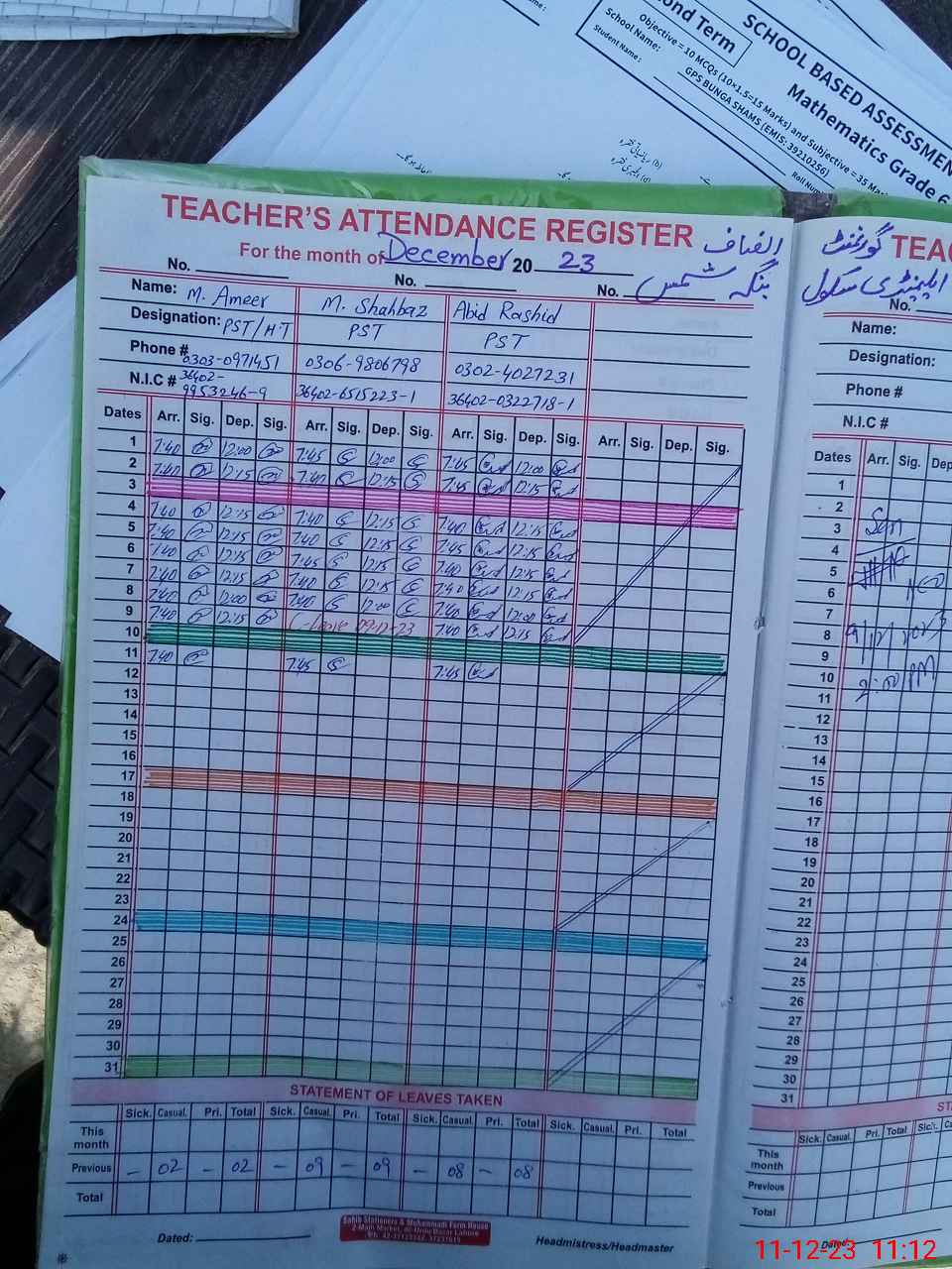 | Name: Mu**** Sh**** Designation: (School Headmaster's/Headmistress's) PST Phone/Cell Number: 03**** |