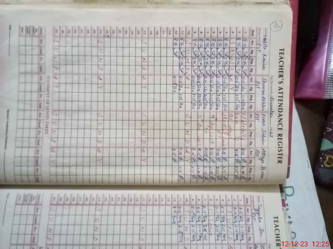 | Leave | Duty | Absent | Maternity | Medical | Ex- Pak |