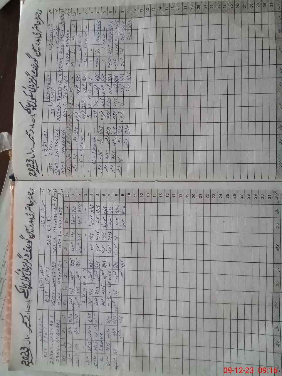 | CNIC | Full Name | Designation | R/C | Absence During Last Calender Month |