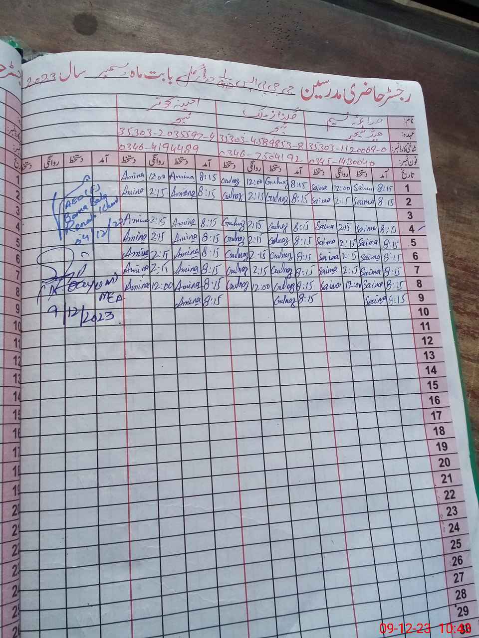 | CNIC | Full Name | Designation | R/C | Absence During Last Calender Month |