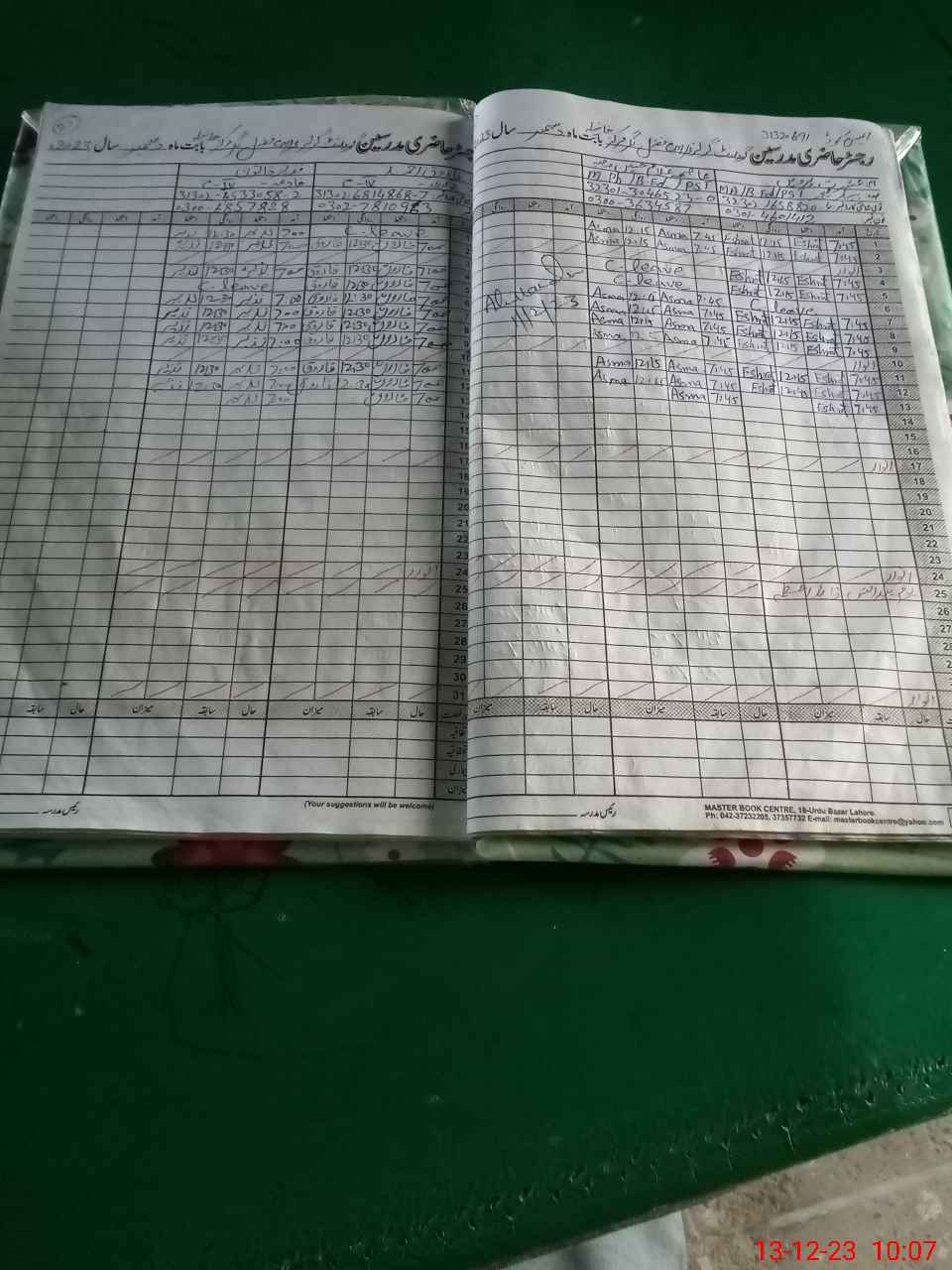| CNIC | Full Name | Designation | R/C | Absence During Last Calender Month |