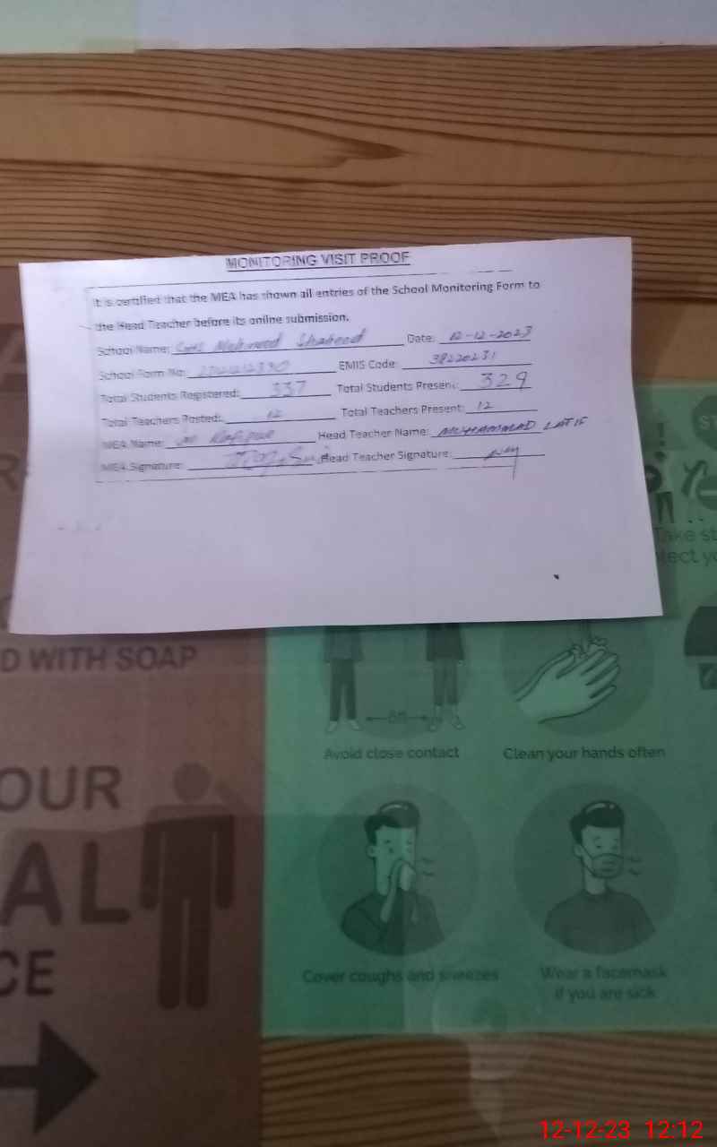 | EMIS Code: 38220231 | Name of School: GHS MAHMOOD SHAHEED | |||