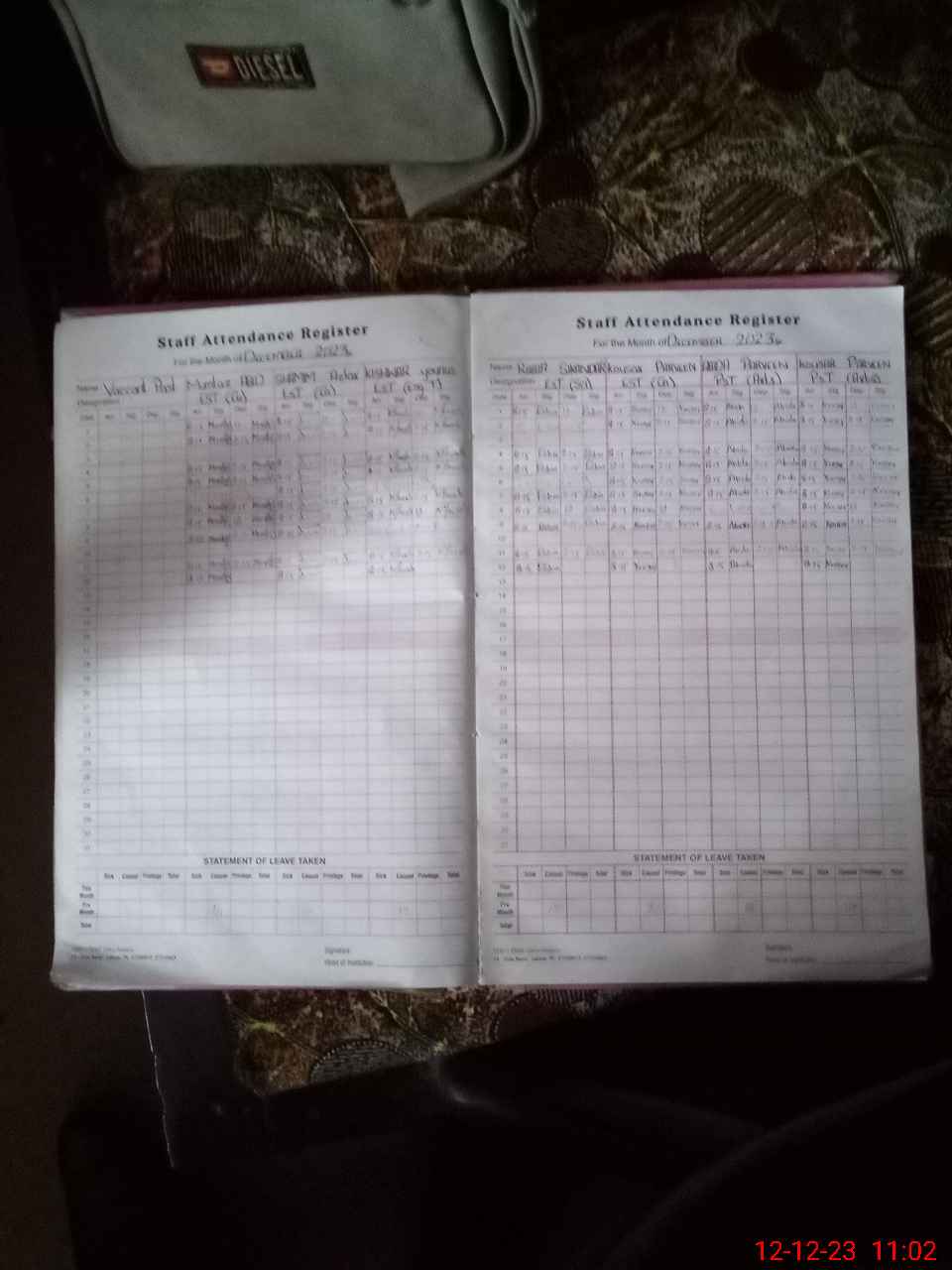 | Leave | Duty | Absent | Maternity | Medical | Ex- Pak |