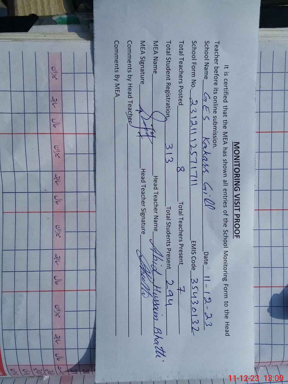 | EMIS Code: 35430132 | Name of School: GES KAKKAR GILL | |||